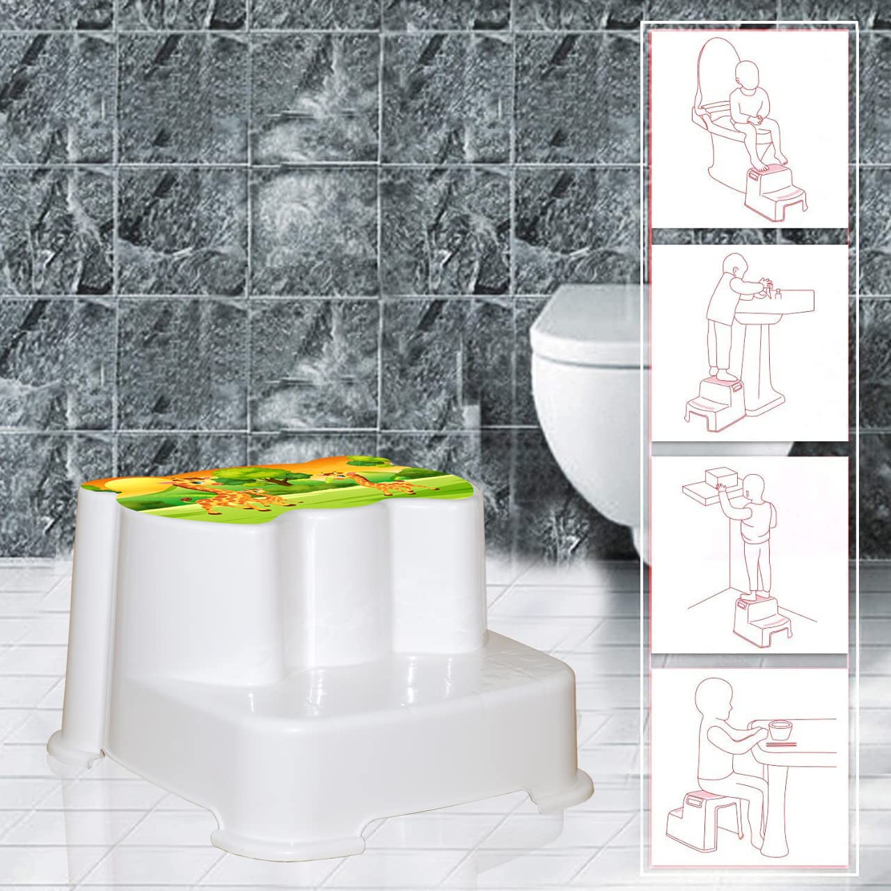 Techhark® Kids Toilet Training Set with Step Stool and Potty Seat, Safari Giraffe Design, Yellow and White