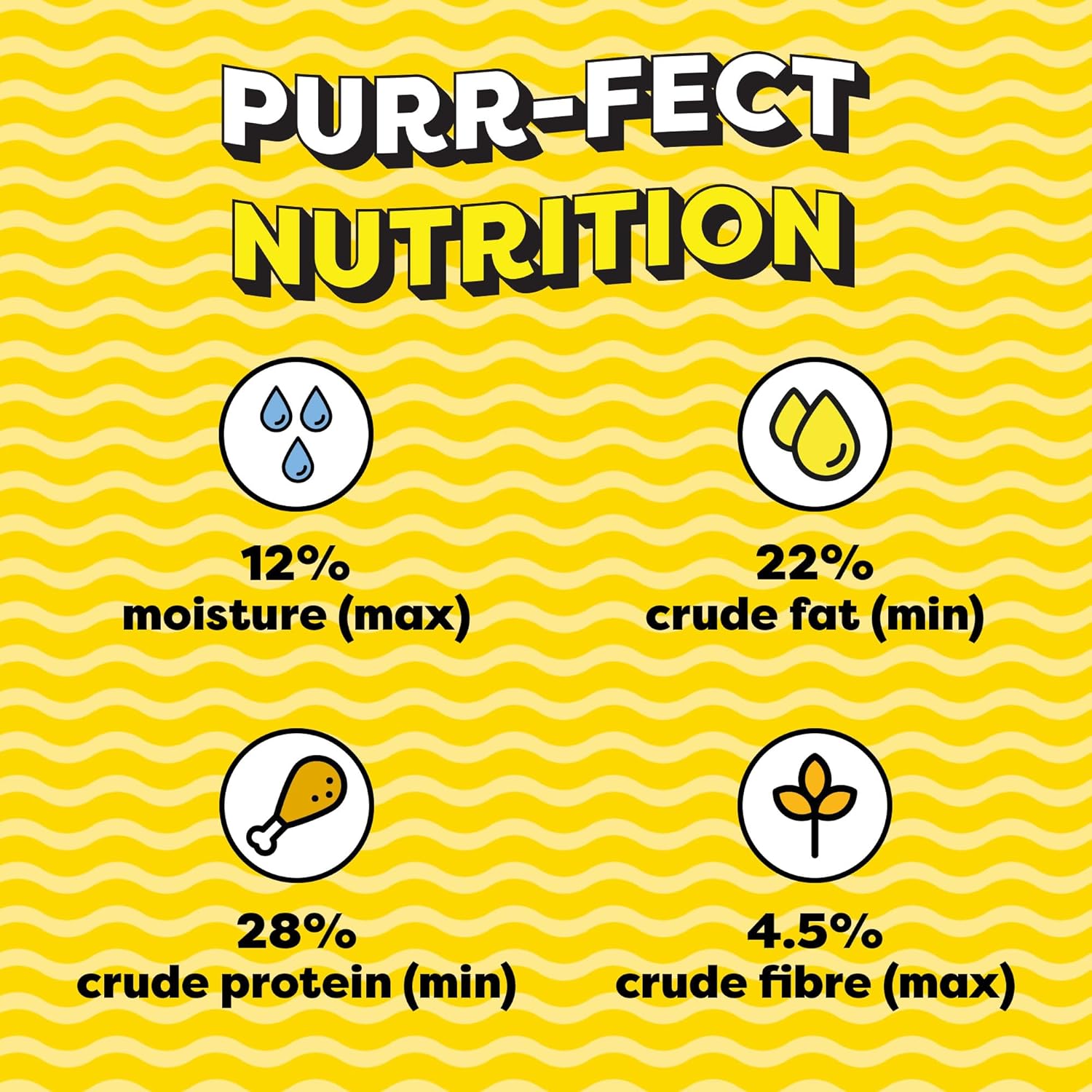 CRUNCHY OUTSIDE, CREAMY INSIDE: Delicious pocket-shaped treats that are crunchy on the outside and soft and creamy on the inside, with a tasty chicken flavour cats love.