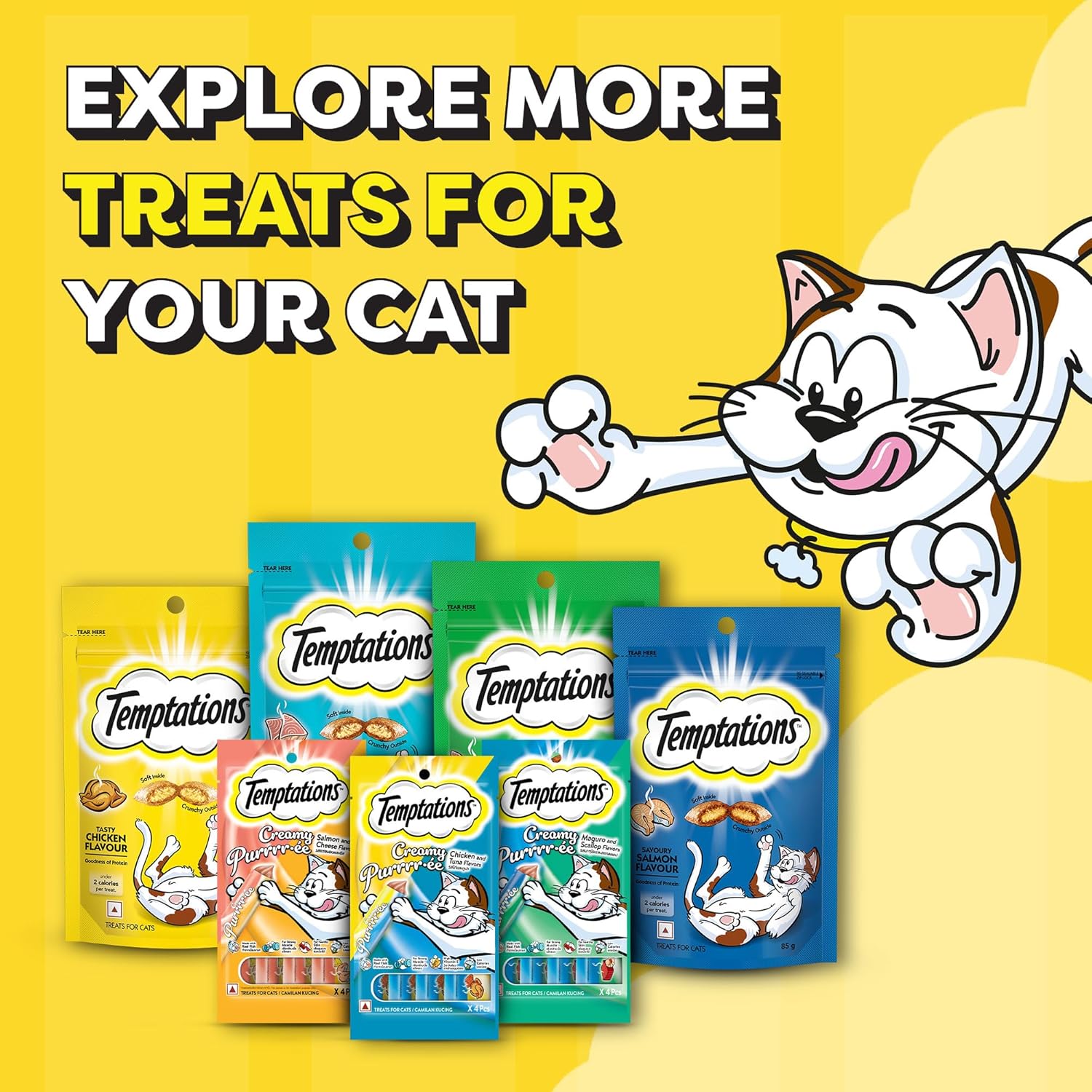Temptations Crunchy Cat Treats, Tasty Chicken Flavour, 85 g, Goodness of Protein, Vitamins & Minerals, Soft Inside Crunchy Outside