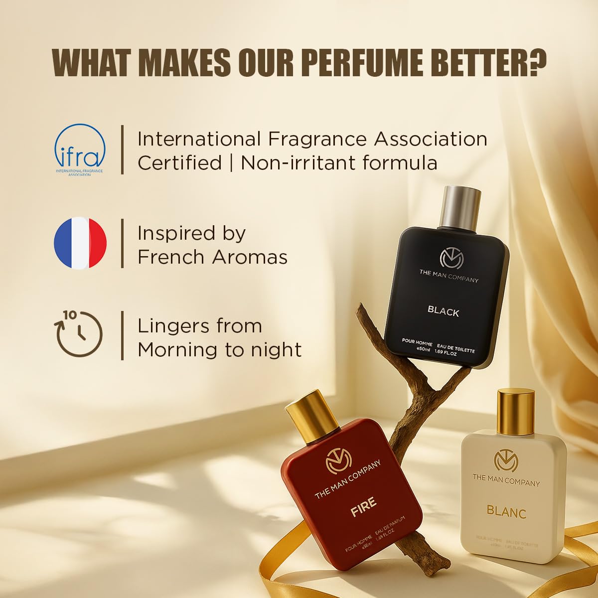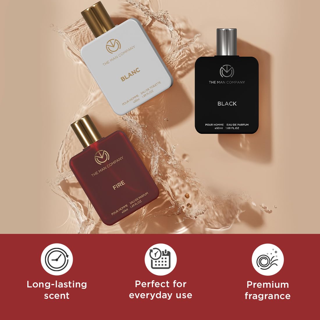 The Man Company Eau de Toilette Trio, 50ml each – Fire, Blanc, Black | EDP & EDT Perfume for Men | Premium Luxury Long-Lasting Perfume Spray | Diwali perfume gift set | karva chauth perfume gift set | fresh scent for daily office wear | Gift for Him