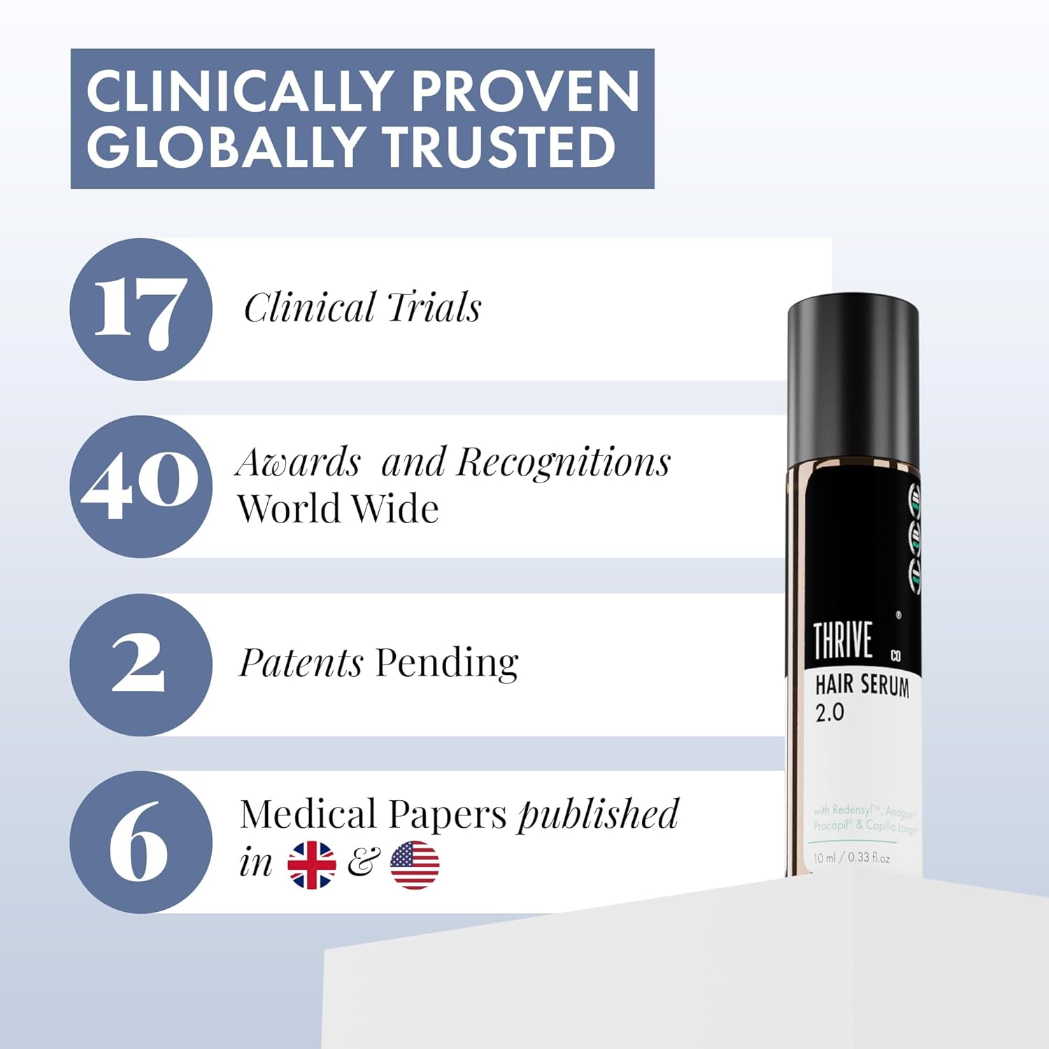 NO CLAIMS. ONLY EVIDENCE. With ThriveCo’s Bestseller Hair Growth Serum 2.0, witness Clinically-Proven 150% IMPROVEMENT IN HAIR GROWTH in just 8 weeks, in addition to measurable improvements in Hair Density, Hair Fall Control and Hair Thickness. The pathbreaking results have been recognized and published by the international Journal of Cosmetic Dermatology.