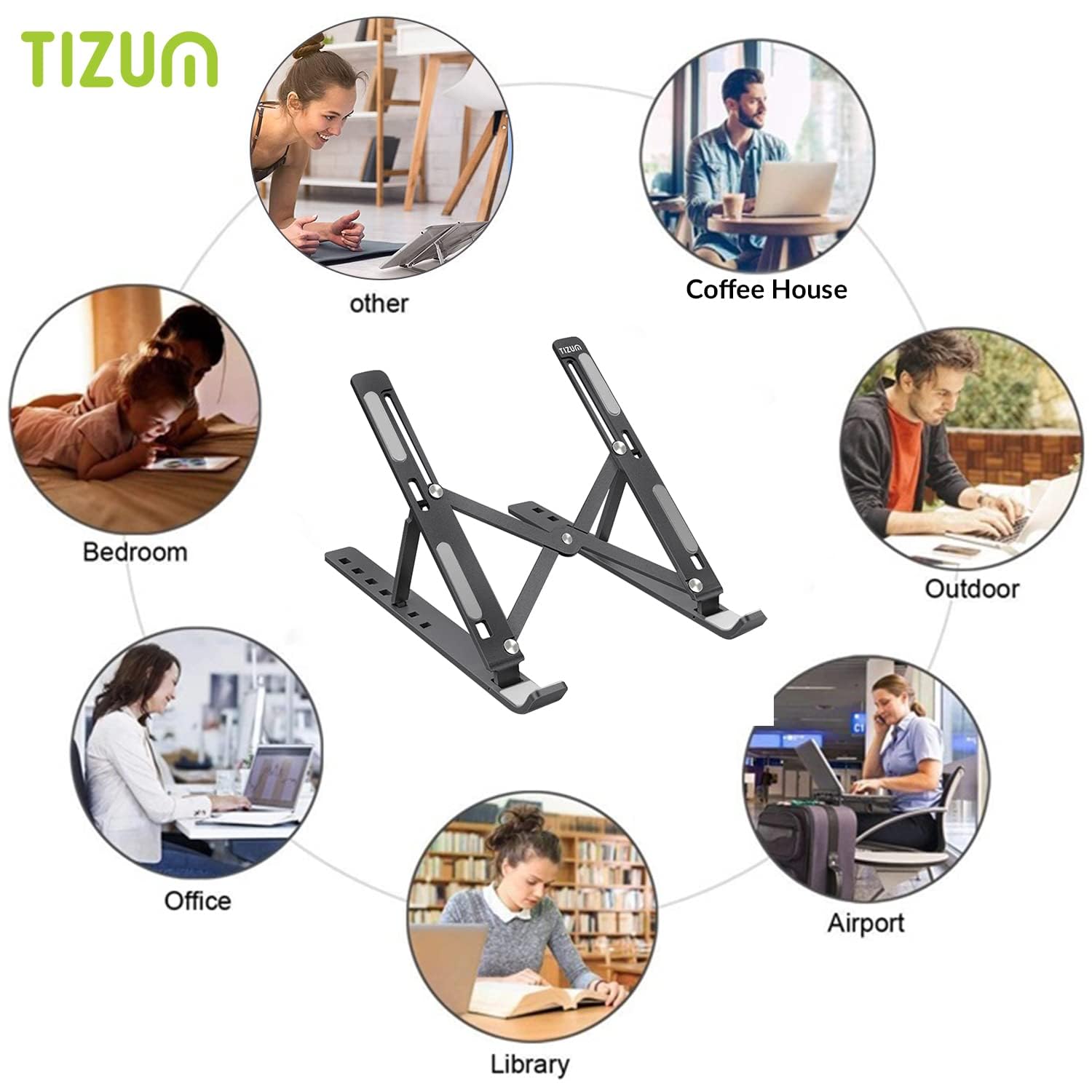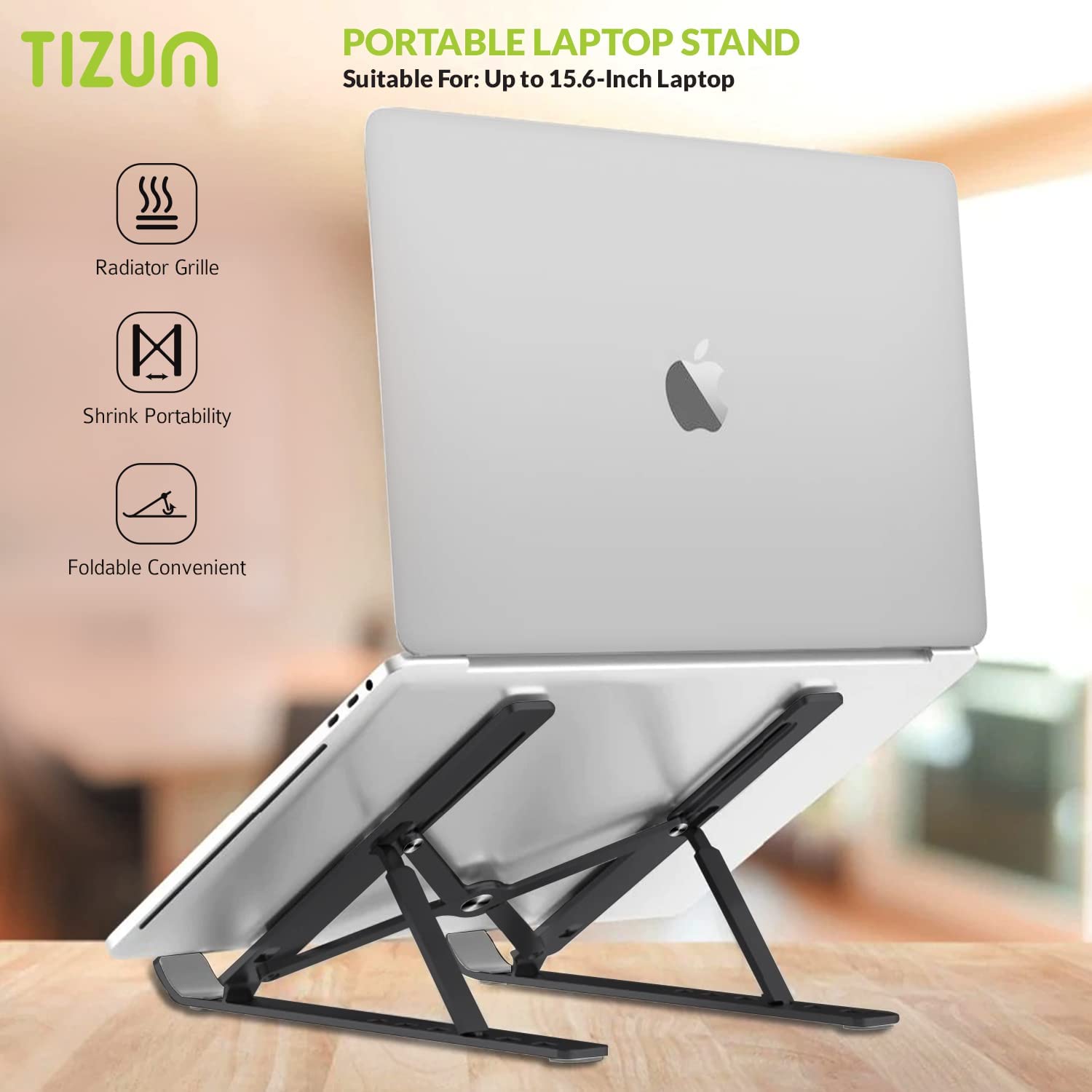 Tizum Ergonomic Laptop Sand Riser/iPad Holder with 7 Adjustable Angles| Imported-CNC Cut, Fully Foldable & Portable| Premium Aluminum, Sturdy Base, Fast Heat Dissipation| for Laptops 15.6” (Black)