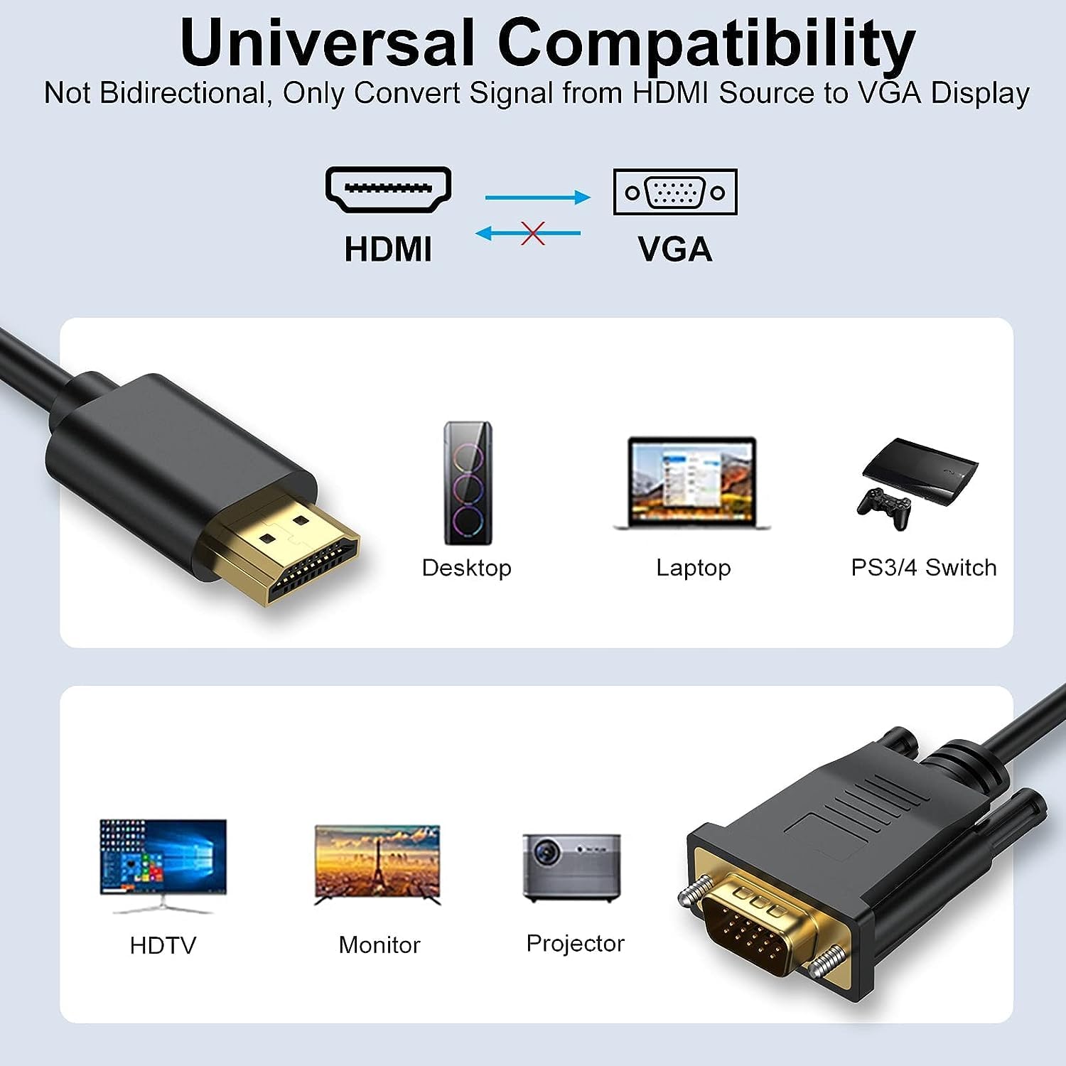 Crystal Clear Image :- Supports resolutions up to 1920 x 1080 @ 60Hz (1080p Full HD), including 720p and 1600×1200 for HD monitors or projectors.Mirror Mode :- Makes your holiday photos and favorite films so much more interesting and enjoyable on the big screen!Extended Mode :- Works like a charm for multitasking.Game Mode :- Enjoy & Play your favorite Game with your friends & Family Loving Once on Large screen.Important Note :-Uni-directional, Not BidirectionalThis cable is used to connect the HDMI source to the VGA Display, it could not work in the opposite direction.For the VGA source to HDMI Monitor solution, please see the table in the following