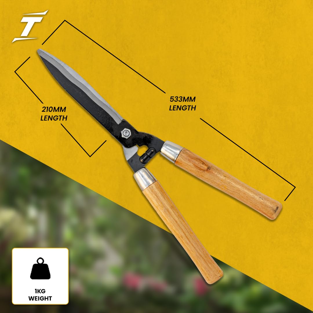 Equipped with 210mm long, 4mm thick 65 manganese steel blades for durable, precise cuts. Weighs 1kg and designed for effective trimming of hedges and shrubs.