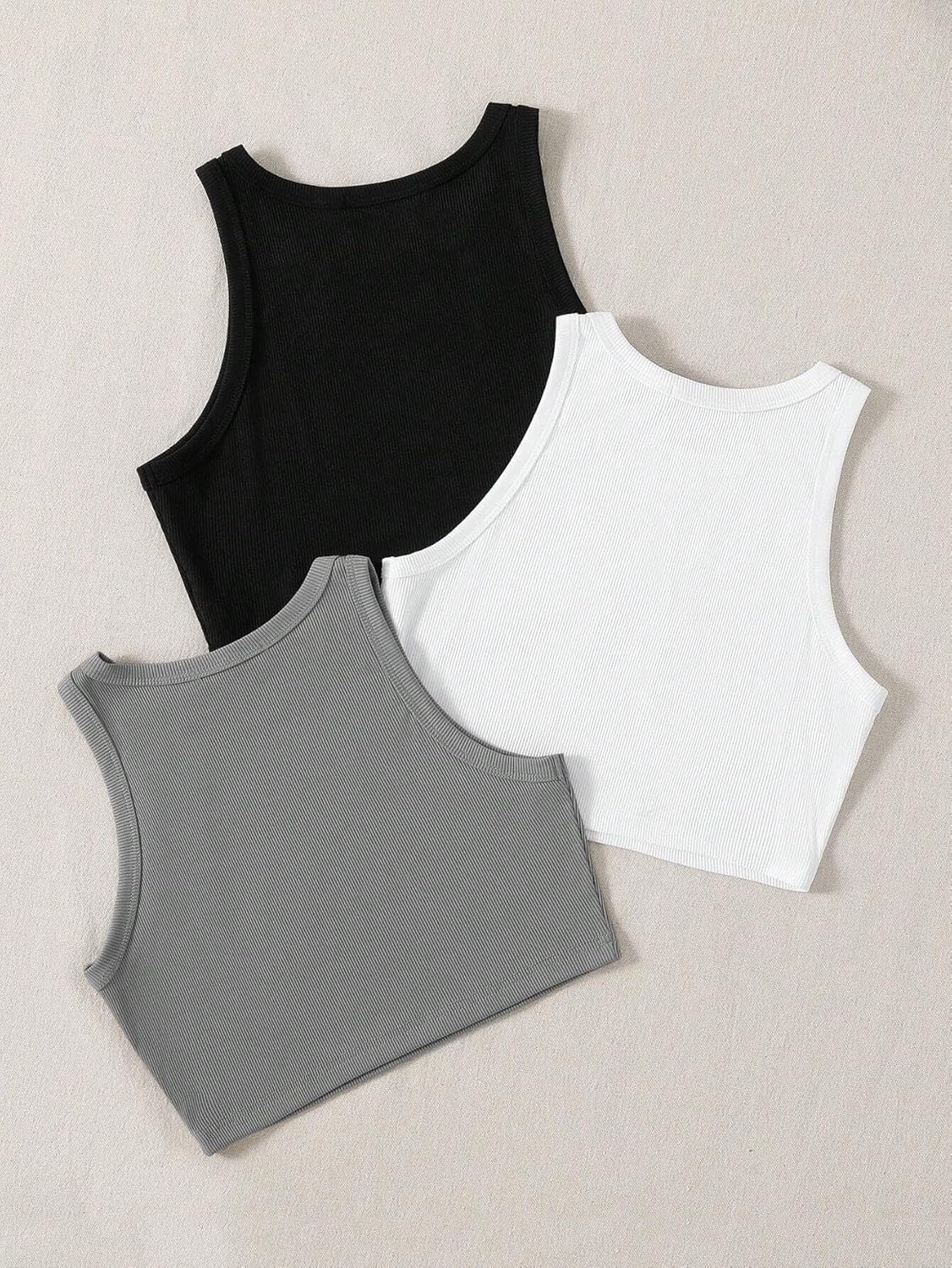 Toochki Top for Women | Spandex Crop Tops | Black White Beige Grey | Short | Western | Pack of 3 Combo