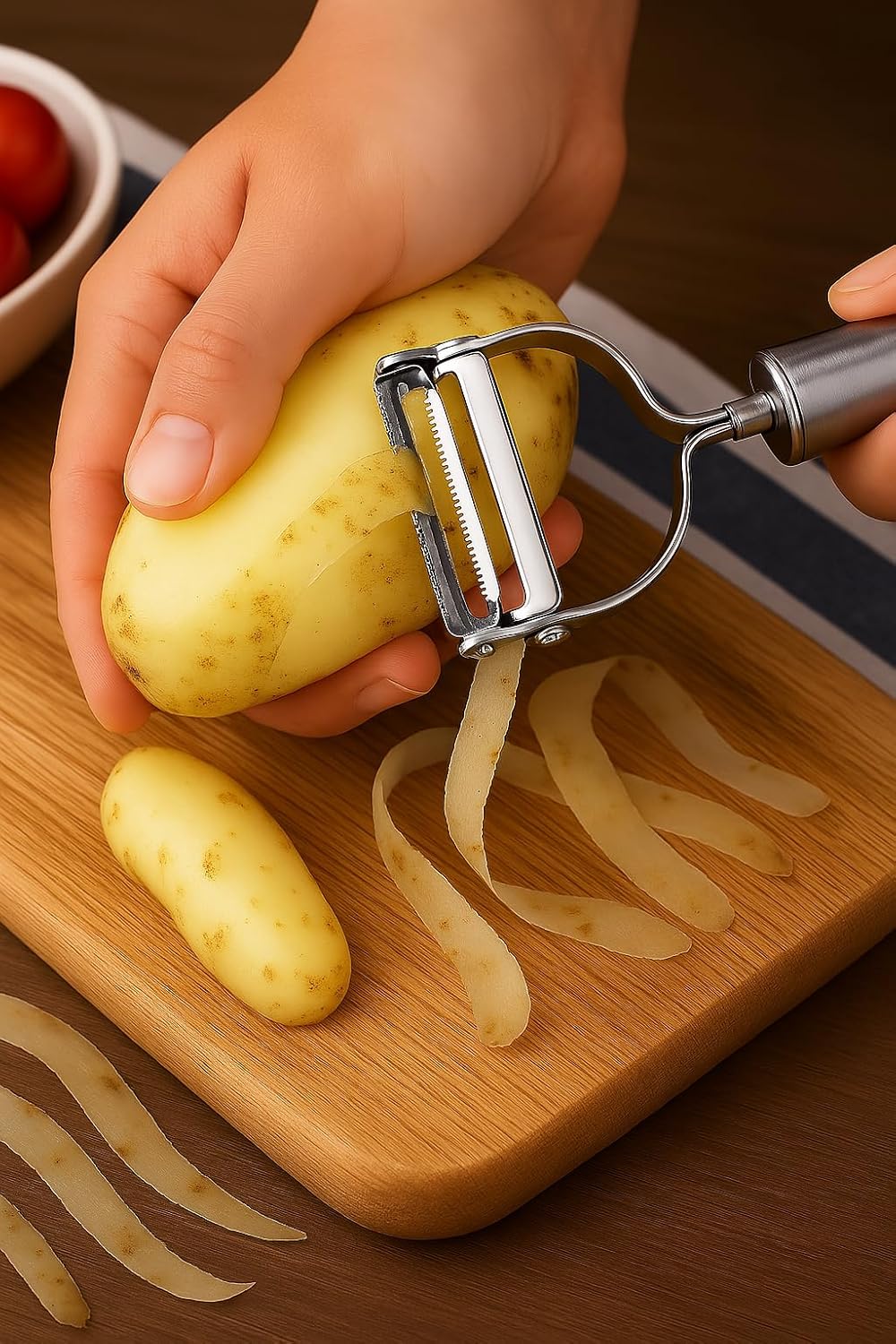 Top Chef Vegetable and Fruit Peeler is your Ultimate Kitchen Companion. Mastering the art of peeling and shredding various shapes and sizes of potatoes, radishes, melons, and fruits is a fundamental skill in daily cooking. Our stainless steel peeler offers a seamless solution, saving you time and effort while ensuring even cuts for healthier meals. Elevate your culinary experience and liberate yourself from tedious tasks with our efficient kitchen tool – a must-have for every home chef.