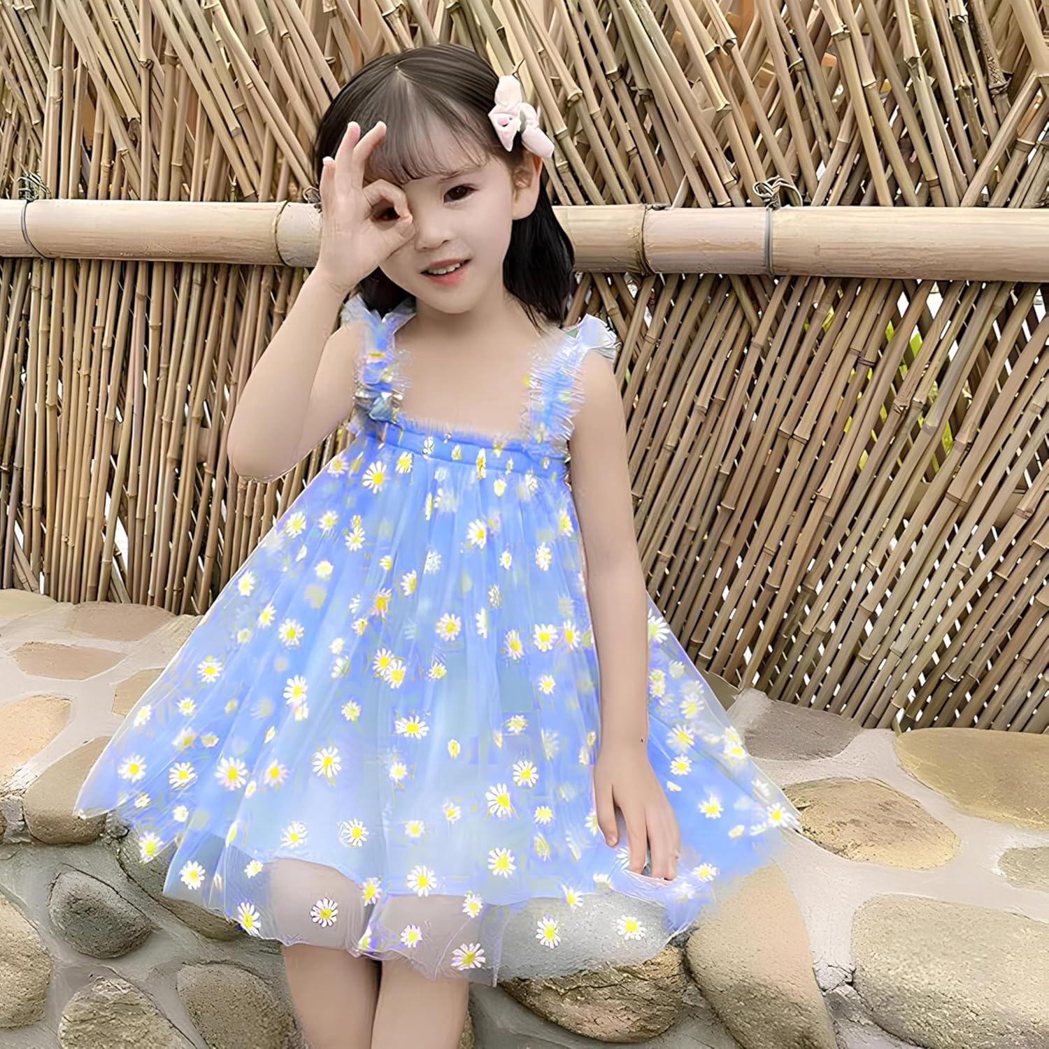 TotzTouch Baby Girls Dress | Frock Stylish Cami Strap Flared Printed Net Sleeveless Gown Light Weight Age Newborn to 4 Years