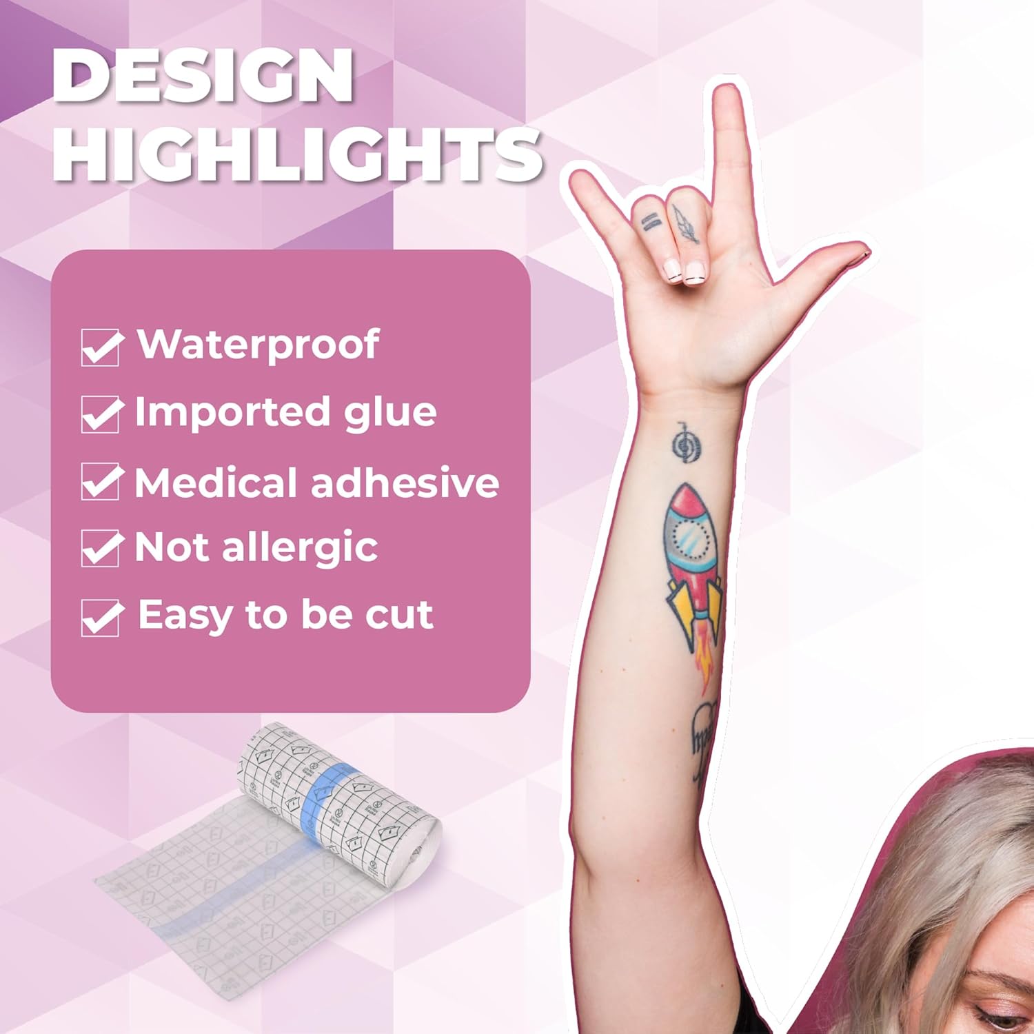 【Cut to Fit Any Tattoo Size】- 10cm x 10m tattoo aftercare bandages. Flexible and easy to cut, ideal for large or small tattoos on arms, legs, back, and chest.