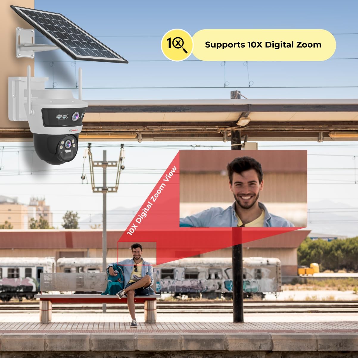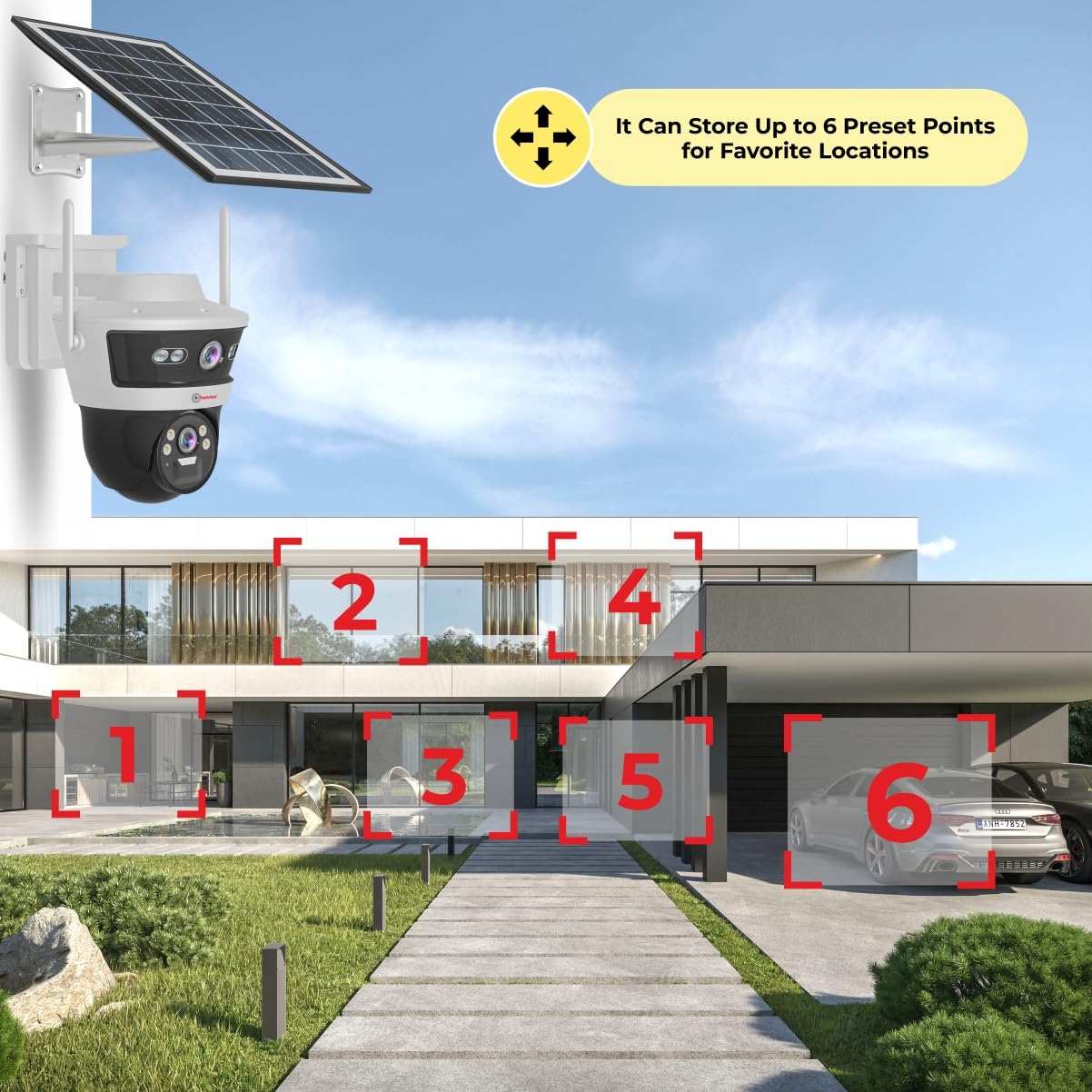 Advanced Zoom and Preset Points The 3+3MP 4G Mini PT Solar Linkage Camera supports 10X digital zoom, allowing for detailed inspection of distant objects. Additionally, it can store up to 6 preset points for favorite locations, facilitating quick navigation to key surveillance areas without the need for manual adjustments.