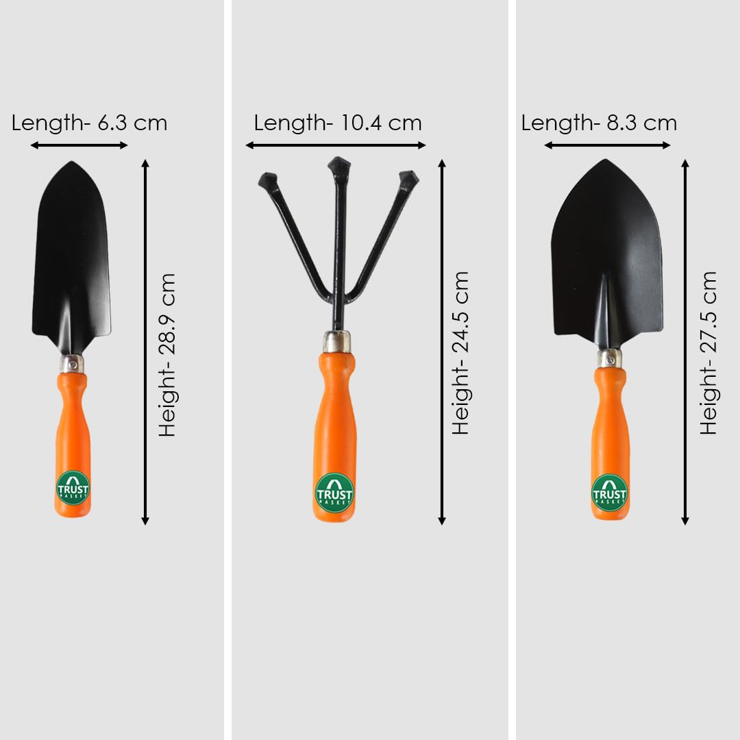 TrustBasket Gardening Hand Tools Set – 3 Pcs Big and Small Trowel, Cultivator – Durable Garden Tools for Home Gardening Set, Gardening Tools Kit for Home Garden, Agriculture Tools & Gardening Items