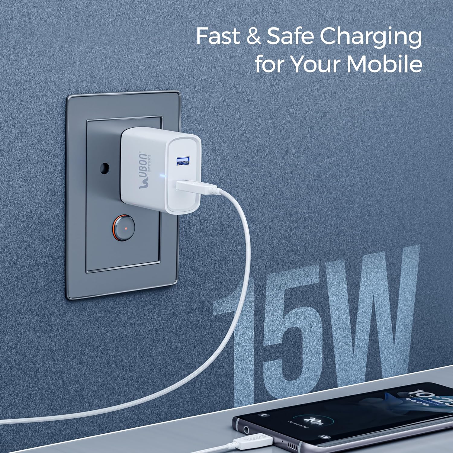 Dual USB Fast Charging: The UBON 15W CH-586 Wall Charger features dual USB ports with a combined 2.4A output, allowing you to fast charge two devices simultaneously for added convenience.