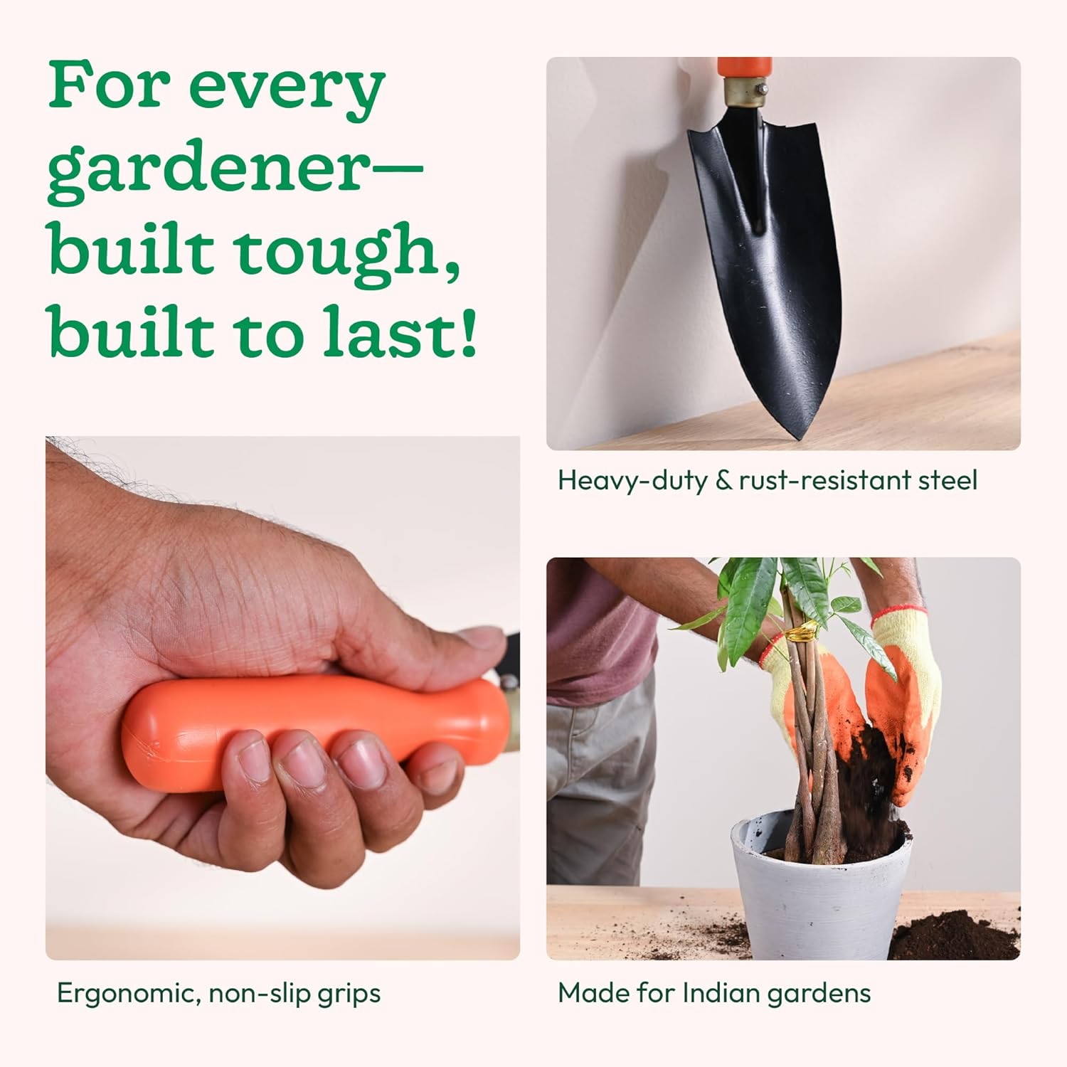 Complete Gardening Kit for Every Garden: Ugaoo’s thoughtfully curated 3-tool gardening kit comes with a traditional khurpi, small trowel, and a weeder—everything you need to maintain a healthy and happy garden!