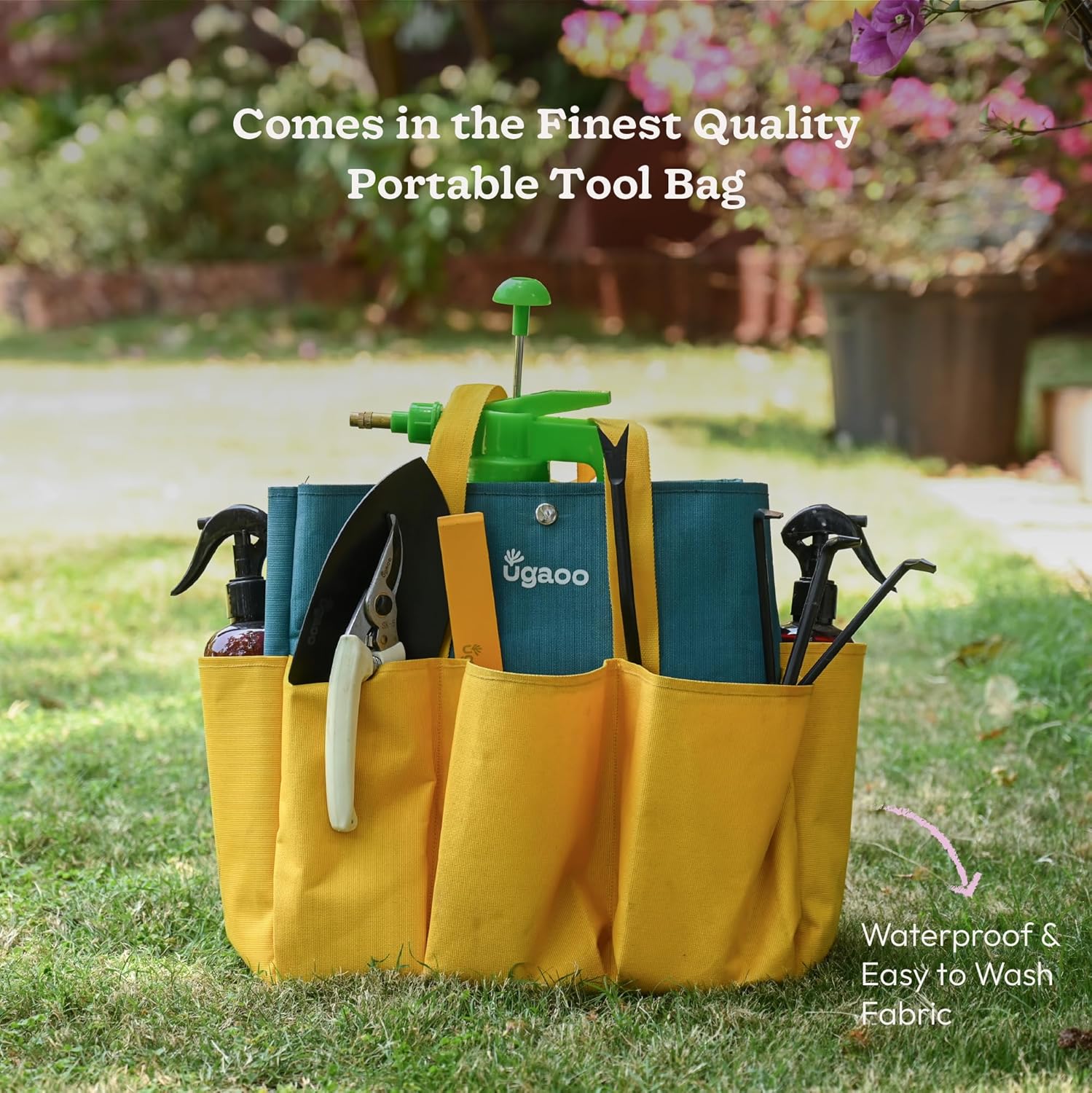 UGAOO Premium Gardening Tool Kit | 11 Pcs | Tool Bag, Cultivator, Weeder, Trowel, Khurpi, Spray Pump, Watering Can, Vermicompost, Plant Tonic, Neem Guard, Pruner | Gardening Tool Set for Home & Garden