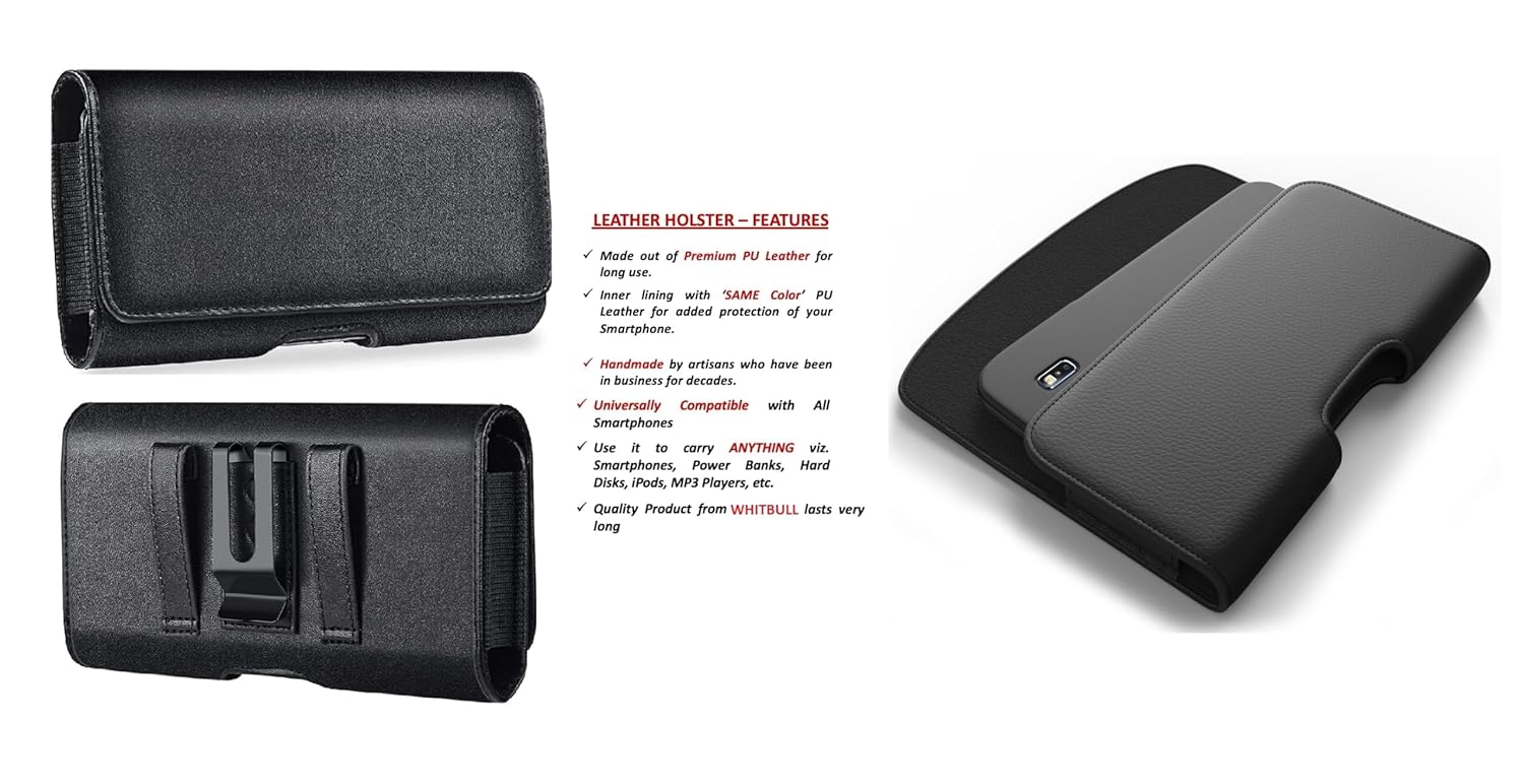 This is a Universal Long Lasting Leather Carry Case Cover Pouch With Hidden Magnetic Closure For Closing The Case.Perfect Fit For Travel And Carrying Your Mobile On Bike.Wear Your Phone Sideways On Your Belt And Always Have It At Your Reach. It has a Leather Wrapped Metal Clip And Also A Belt Loop In Case You Want That Extra Security. Perfect Fit.