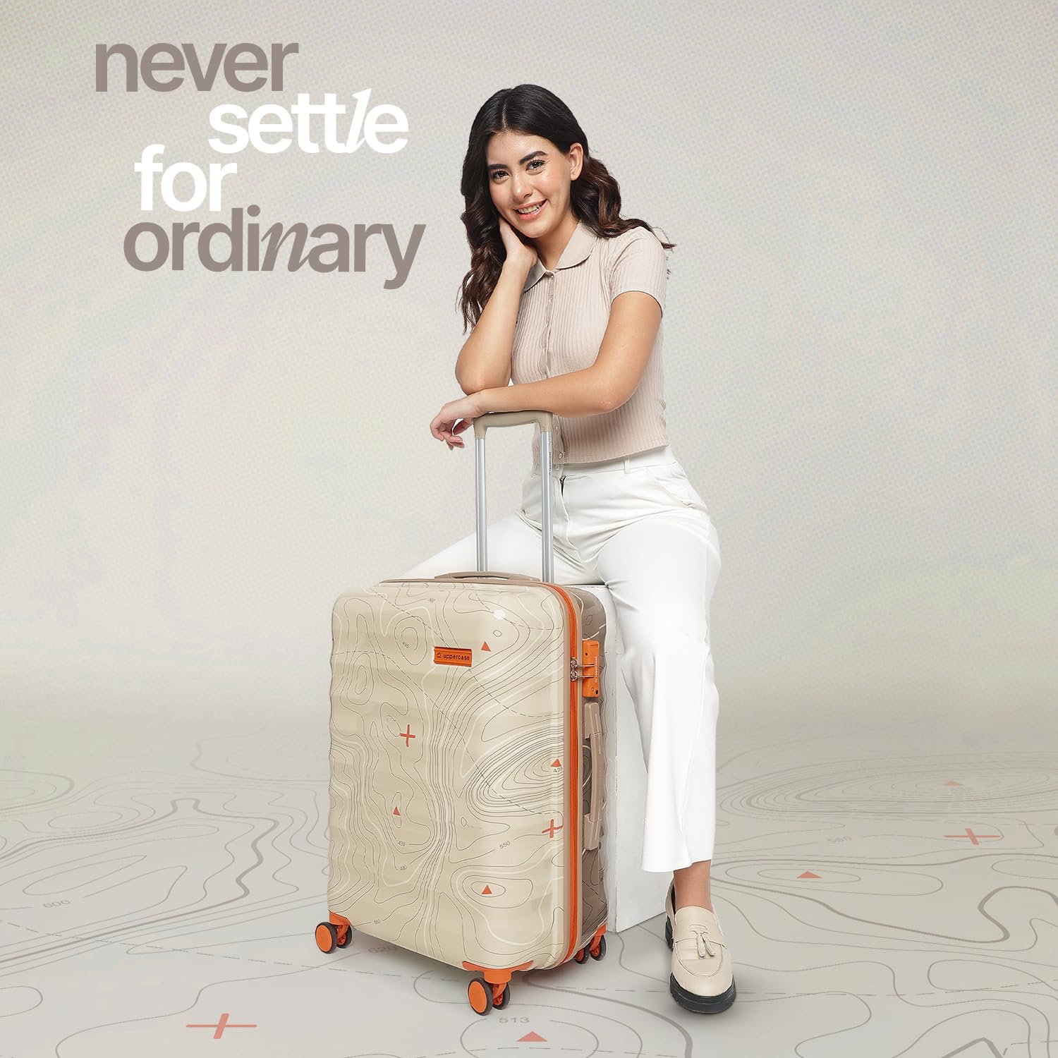 uppercase Topo (Medium) 66 cms Hardsided Check-in Trolley Bag 8 Wheel Sustainable Double Spinner Luggage with TSA Lock & Anti-Theft Zippers Unisex 2000 Days Warranty Dual Tone (Taupe & Beige)