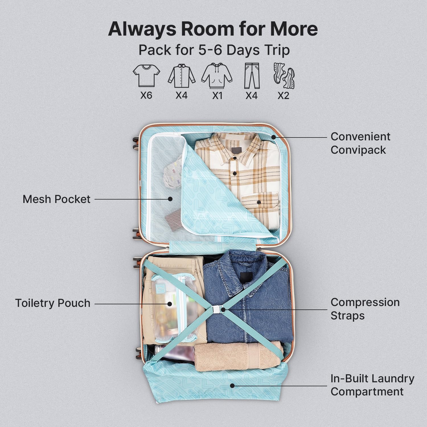 Enhanced Security with TSA Lock & Anti-Theft Zippers – Keep your belongings safe with a flush-mounted TSA-approved lock and tamper-resistant zippers.