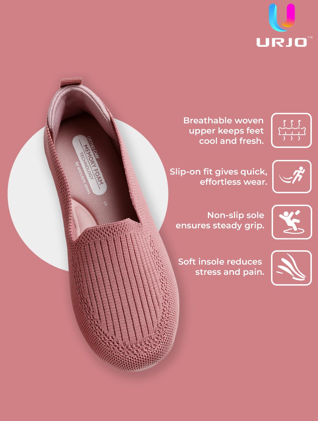 Introducing URJO with Ultimate Resilience – BOUNCE BACK technology. Say ‘hello’ to our new URJO rebound collection. The bounciest, springiest, most super – comfy all seasons soft fitting shoes that breathe. Design, Innovation & Engineering all come together to create this unique and incredible sports shoe. URJO sports shoe collection is soft, snug and strong. Special insoles with Bounce Back Technology make URJO an ultimate comfort shoe! URJO will delight you with every step you take. The concave – convex texture of URJO outsole increases the friction, keeps you safe on slippery roads and provides cushioning and bounce performance. URJO provides impact absorption, comfort and support while reducing fatigue and enhance recovery while walking. It is incredibly light & pillow soft, flexible, anti-skid, and equipped with healing and recovery features. URJO offers the product line where technology meets comfort & lifestyle. With that thought, and a passion for elegant design, artistic sensitivity, and the finest materials in mind, URJO have come up with sports shoes that symbolize fun and youthfulness. Cool, casual and colorful while still being classy, they’re the best companion for a long morning walk, a fun stroll in the mall, or you can just hang out in them all day. Technically advanced, good looking and fun to be with – URJO strives to be like the youth of today. URJO is the most comfortable -all day -any day -anywhere wear product. Re Charge your feet with URJO