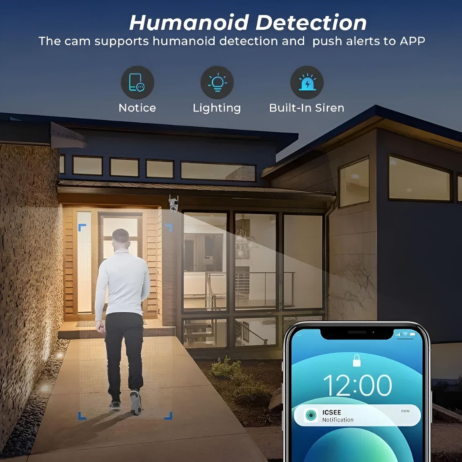 Full-Color Night Vision with Dual Illumination – Built-in 12 IR LEDs and 12 white LEDs provide both full-color and black & white night vision. Capture bright and clear footage up to 25 meters even in complete darkness, offering reliable 24/7 monitoring.