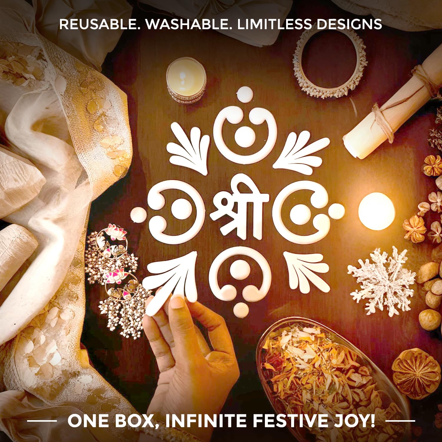Varnika by Welburn Veda&Co® Reusable Rangoli Kit (120 Piece) for Diwali Decoration, Navratri & Pooja & Floor Decor | Indian Festive Floor Art for Festive Gifting | Washable DIY Rangoli Set