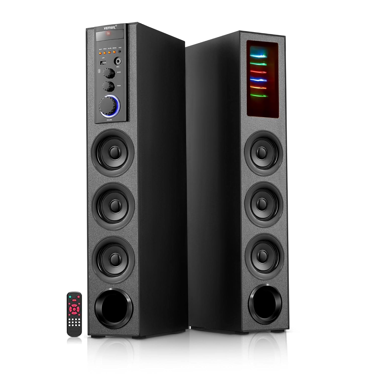 VEmax Curve 100W Multimedia 5.0 Channel Wireless Bluetooth Twin Tower Home Theatre System with Karaoke MIC Support, USB, AUX, FM