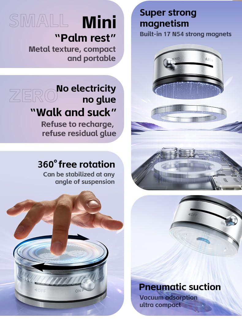 Portable and Lightweight Design: This vacuum magnetic phone holder combines smart vacuum sensing technology to provide your phone a firm pull and steady support—even when you hit speed bumps, brake unexpectedly, or encounter other road conditions.