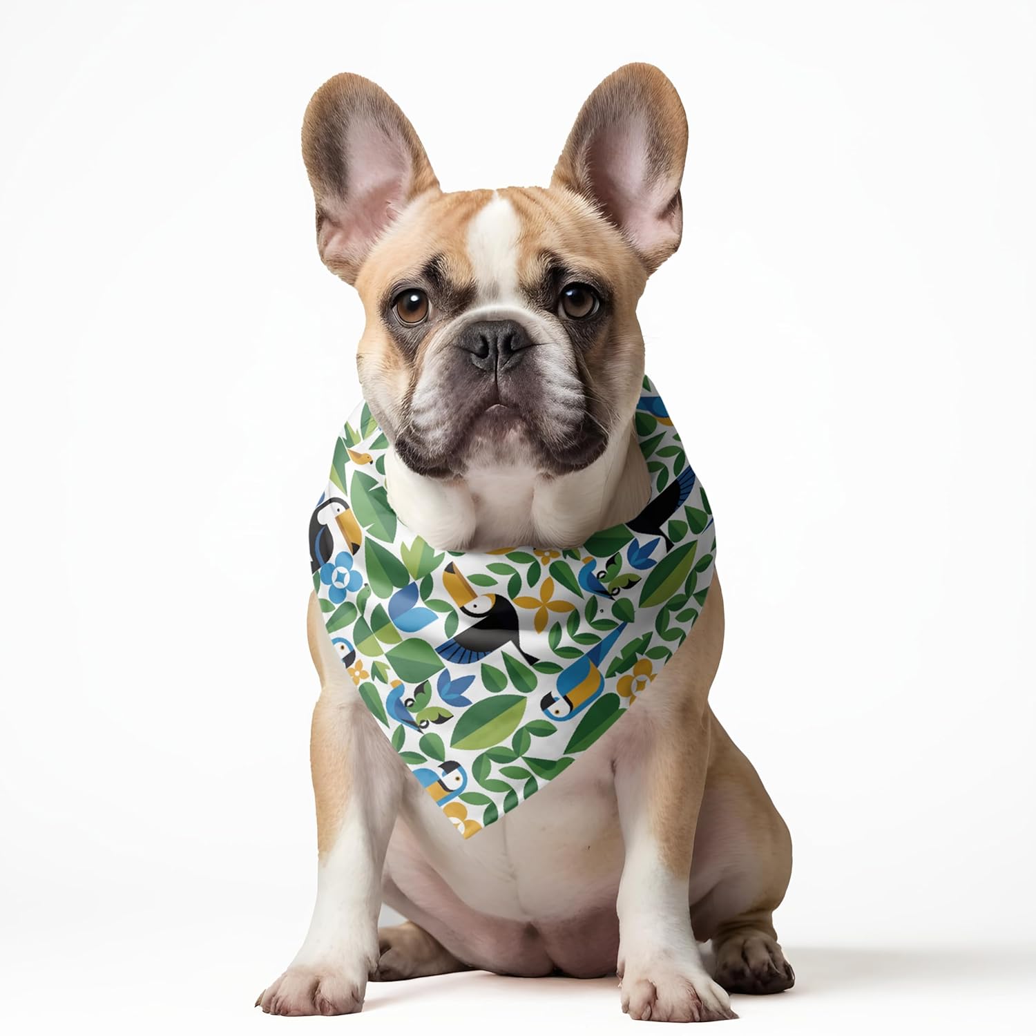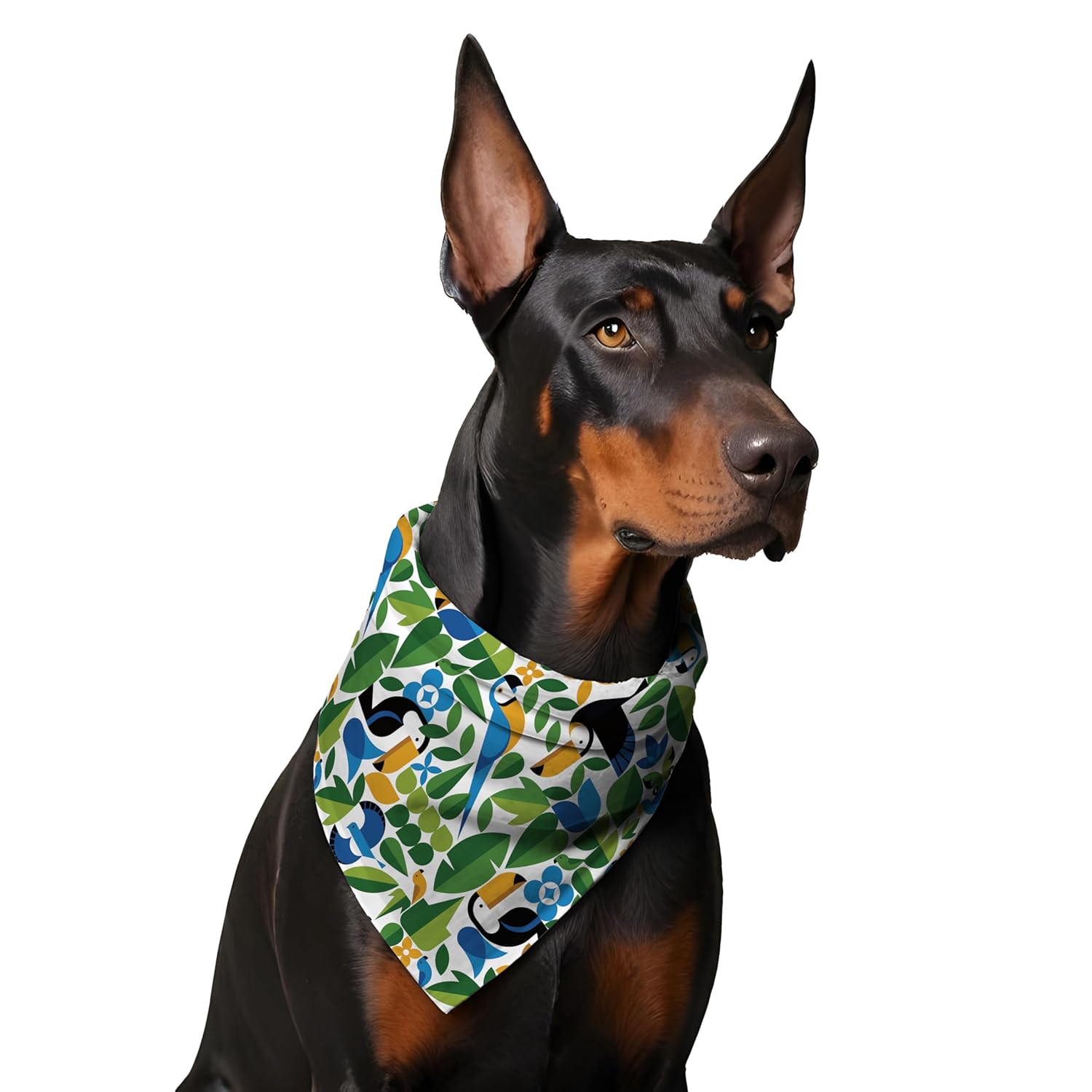 W Brings Parrots and Toucans Dog Bandana/Scarf | This Stunning Gorgeous Design Dog Bandana Scarf is Perfect Styling Accessory for Dogs Large, Medium & Small. One Size Fits All.