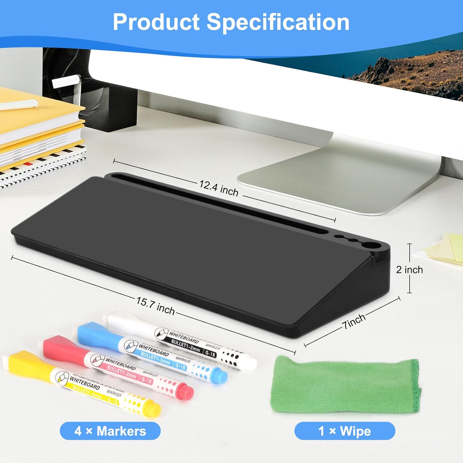 Compact Size for Desk – Sitting compactly between your computer and keyboard, this small glass whiteboard can maximizes your workspace. The dimension of the product is 15.7 x 7 x 2 inches, which make it as a valuable addition to office. At the same time, it can enhance office organization and efficiency.