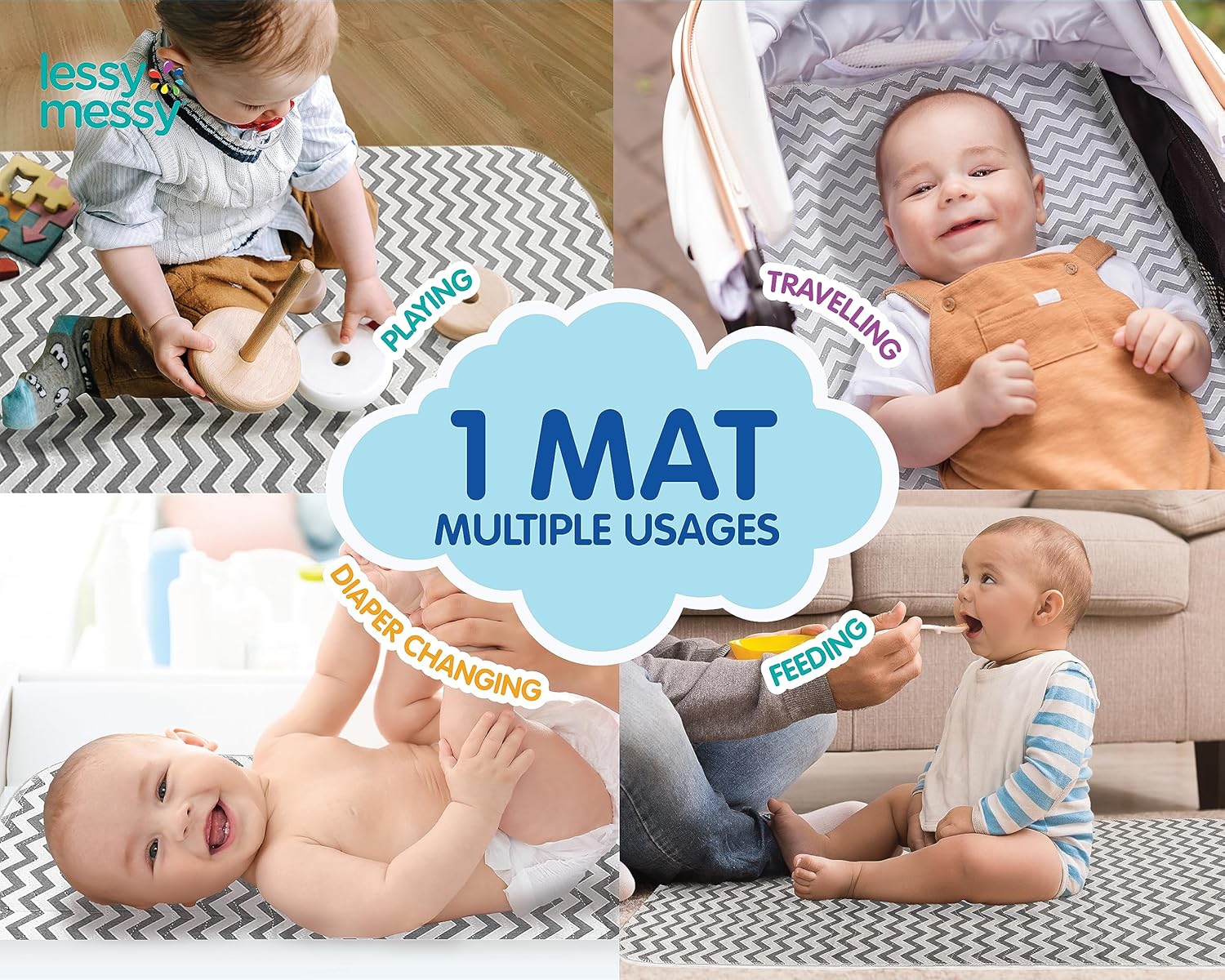 designed to withstand multiple washes.Lessy Messy mats are lab-tested to wash over a 100 washes without affecting their absorbency and quality. This means that they will last for a long time without the need to buy new mats for your baby.