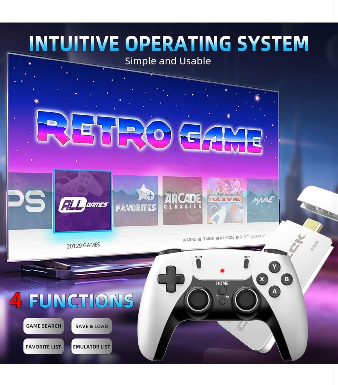 WBD New Retro Video Game Console, Nostalgia Gaming Stick, Classic Video Games with 4K HDMI, 20,000+ Games and 19 Emulators, Upgraded Dual 2.4G Wireless Controllers 64GB