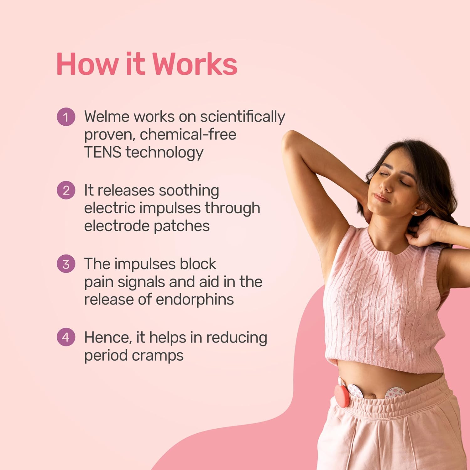 CLINICALLY PROVEN DEVICE: Welme’s efficacy and safety have undergone rigorous examination through clinical testing. These trials aim to ensure that the device functions as intended, effectively providing relief from period cramps through its TENS technology. Welme is a clinically proven and tested device for you and your loved ones.