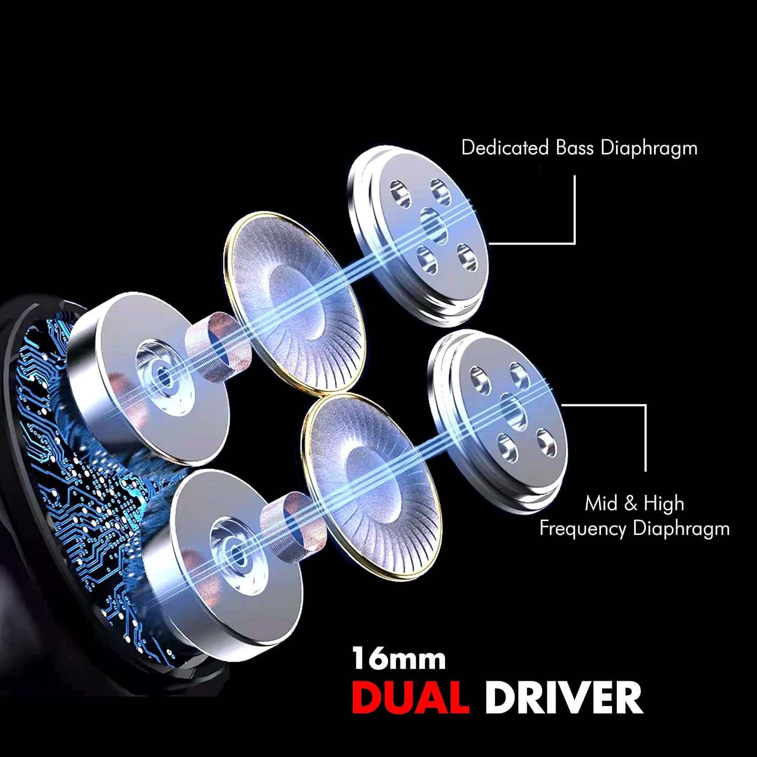 Dual 16 mm Drivers – Gear up to double the drivers for heavy bass sounds