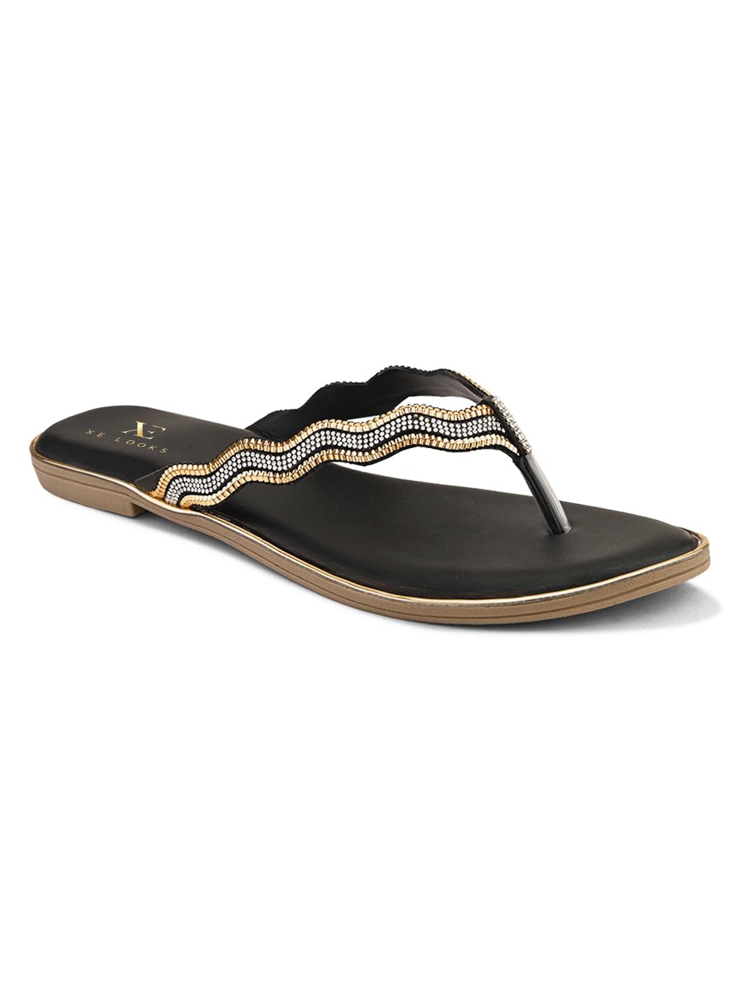 XE Looks Traditional Slip-On Sandal with Stone-Styled Strap Design For Girl & Women