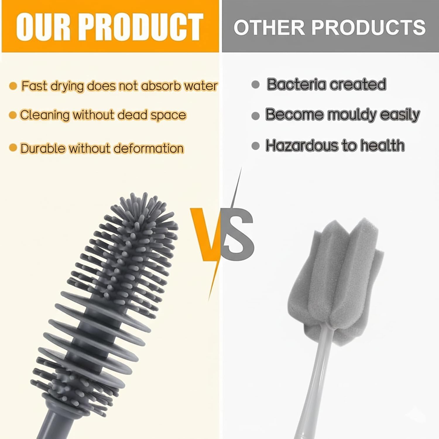 The bottle brush is temperature resistant and can be sterilized in boiling water. Easy to clean, does not absorb water, rinses with tap, cleans and drains quickly.