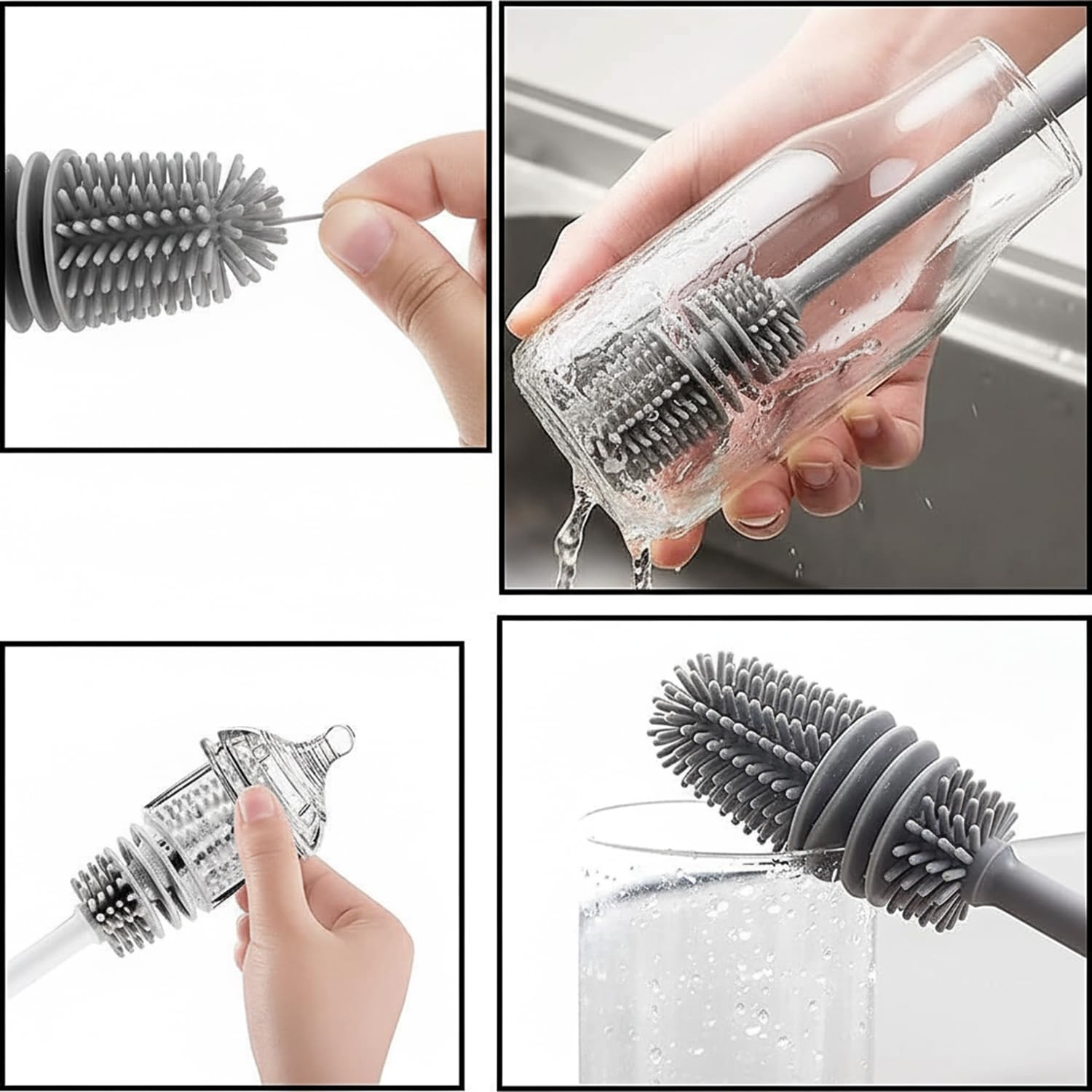 XML Bottle Cleaning Brush Silicone Long Handle for Baby Bottle, Water Bottle, Containers, Vase and Glass, Bottle Cleaner for Home and Kitchen Accessories Item Products (31-CM-Silicone-Grey-Brush)