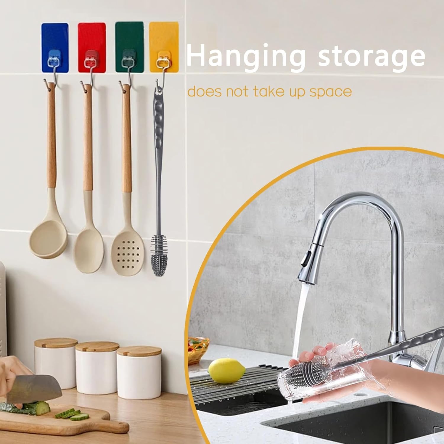 The design of the hanging holes at the bottom of the handle can be hung to dry. This is convenient for storage and saves space.