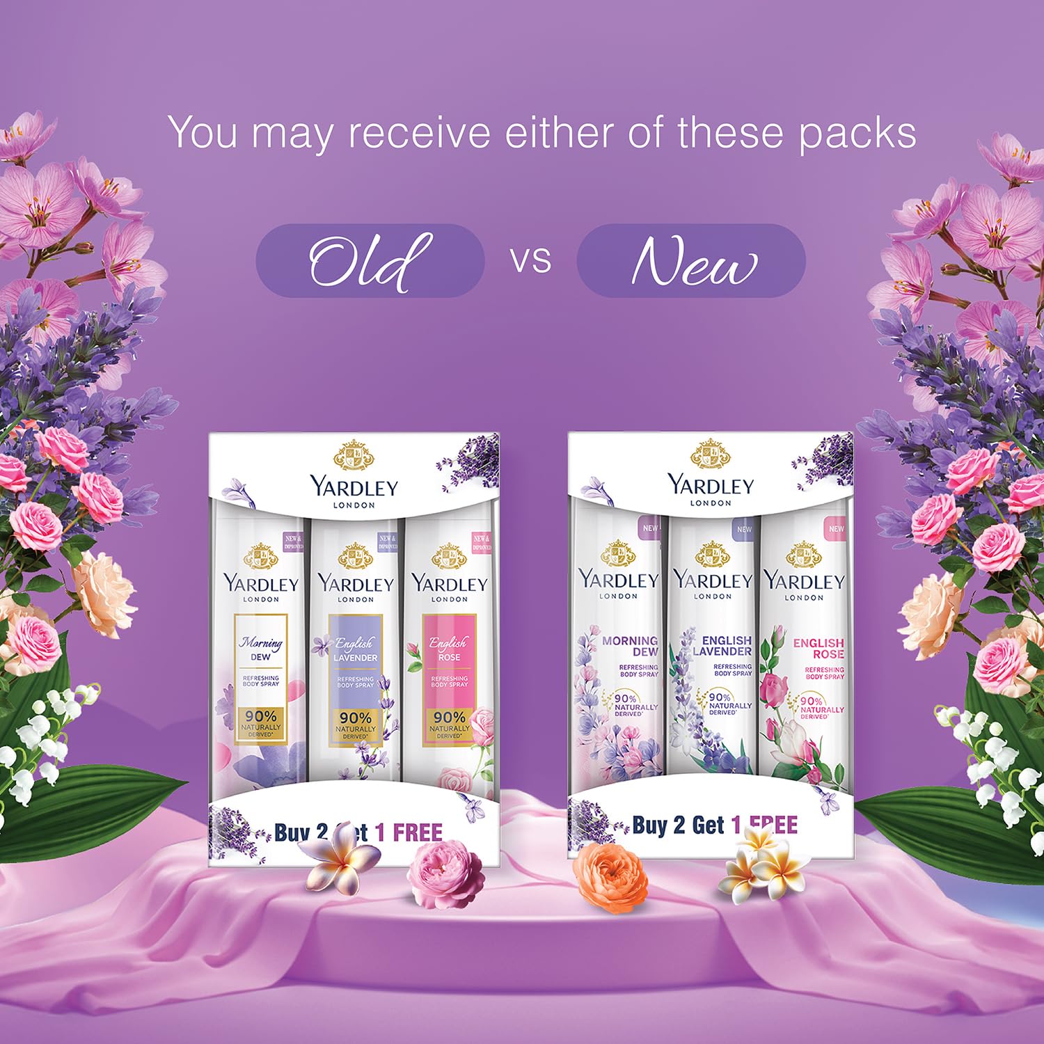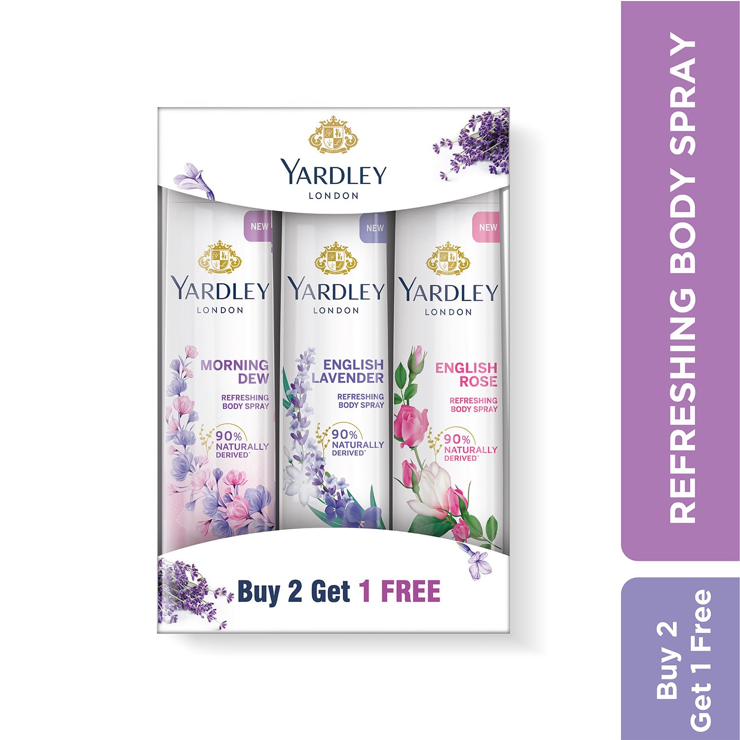 Yardley London Daily Use Deodorant Body Sprays for Women| English Lavender, English Rose, & Morning Dew Deodorant Assorted Pack| 90% Naturally Derived| 150ml Each