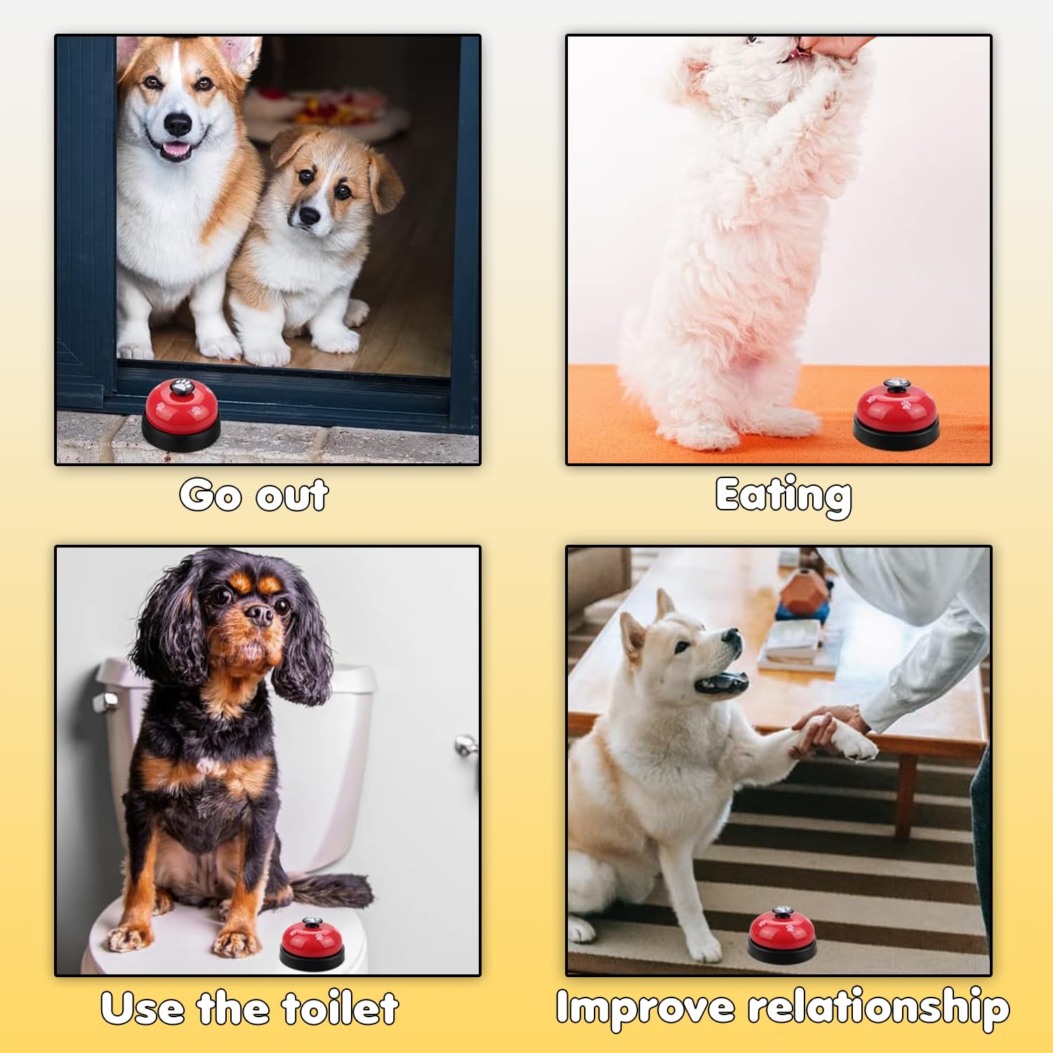 🔔 Train Without Barking or Scratching – Teach your dog to ring the bell to go outside instead of barking, whining, or scratching at the door. This bell offers a fun, positive way to improve communication, build habits, and reinforce toilet training. It’s the perfect solution for pet parents who want to reduce stress and create a more peaceful home environment. Ideal for puppies and small dogs learning house manners.