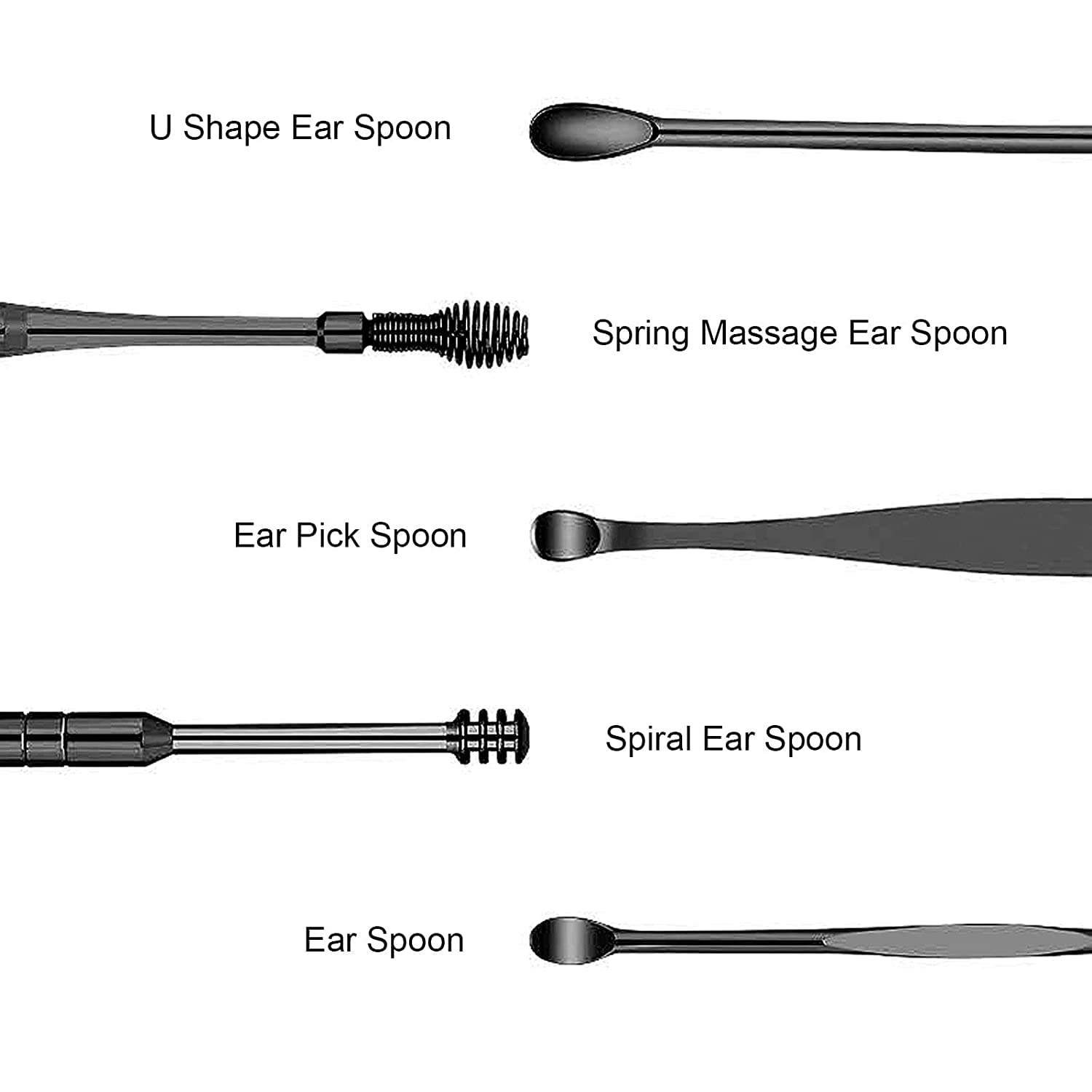 All ear picks are made of stainless steel, durable nd anti-rust, easy to clean and sterilize. These spring ear wax cleaner tool sets extra durable in use and not easy to distort.