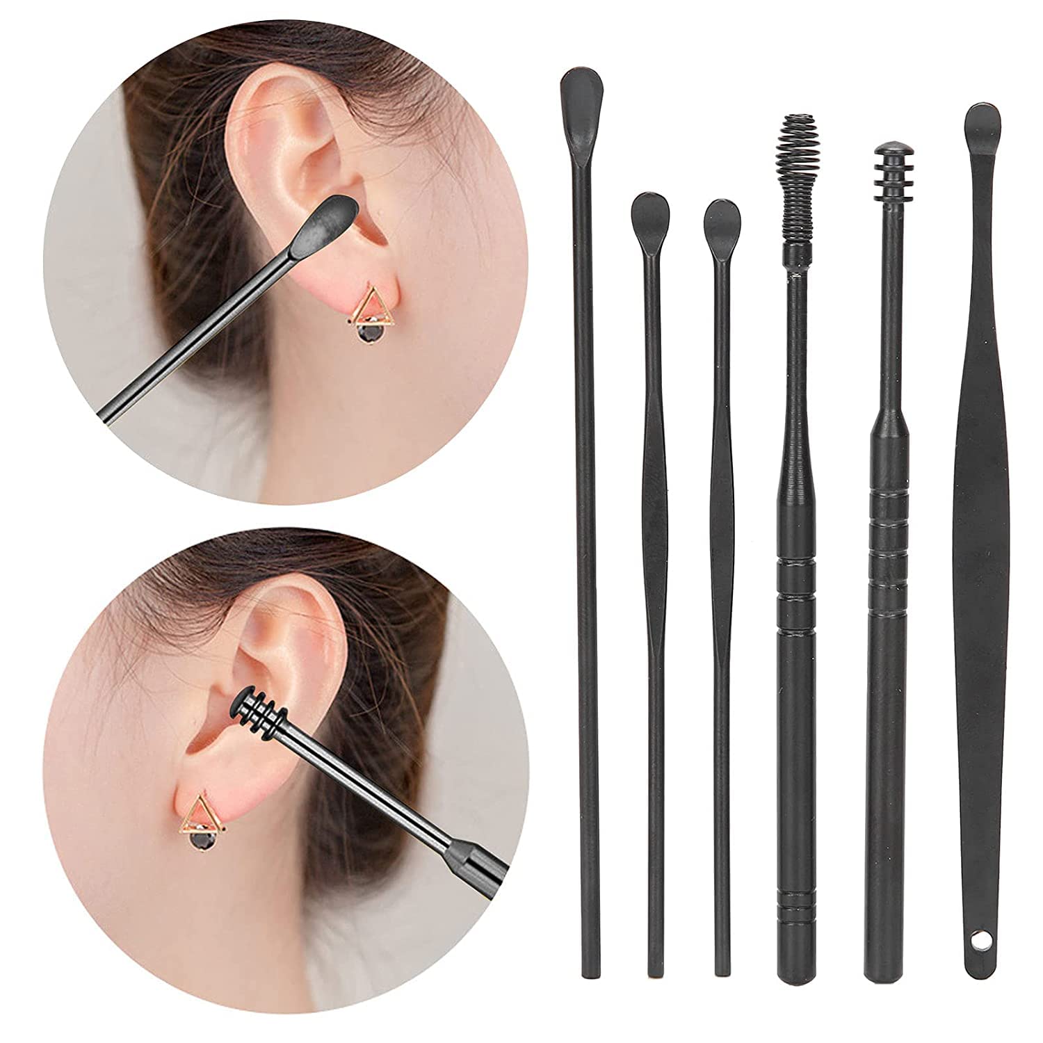 Zabb 6 Pcs Ear Wax Cleaner – Resuable Ear Cleaner Tool Set with Storage Storage Leather Pouch – Ear Wax Remover Tool Kit with Ear Curette Cleaner (Black, Color)