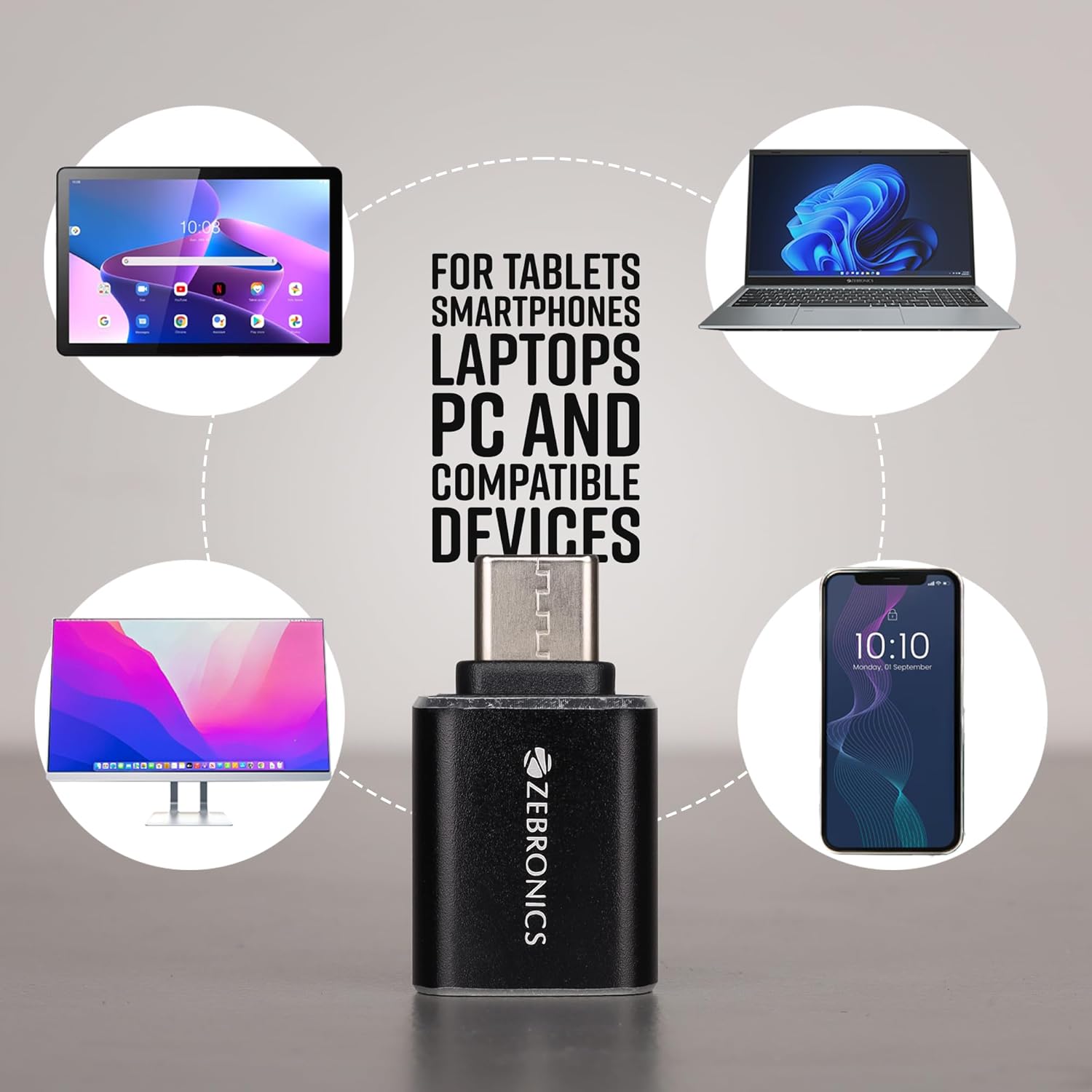 ZEBRONICS ATC1 USB Type A to Type C Converter, USB 3.0, High-Speed Data Transfer, Backward Compatibility, Plug and Play, for Laptops | Smartphones | Compatible Devices