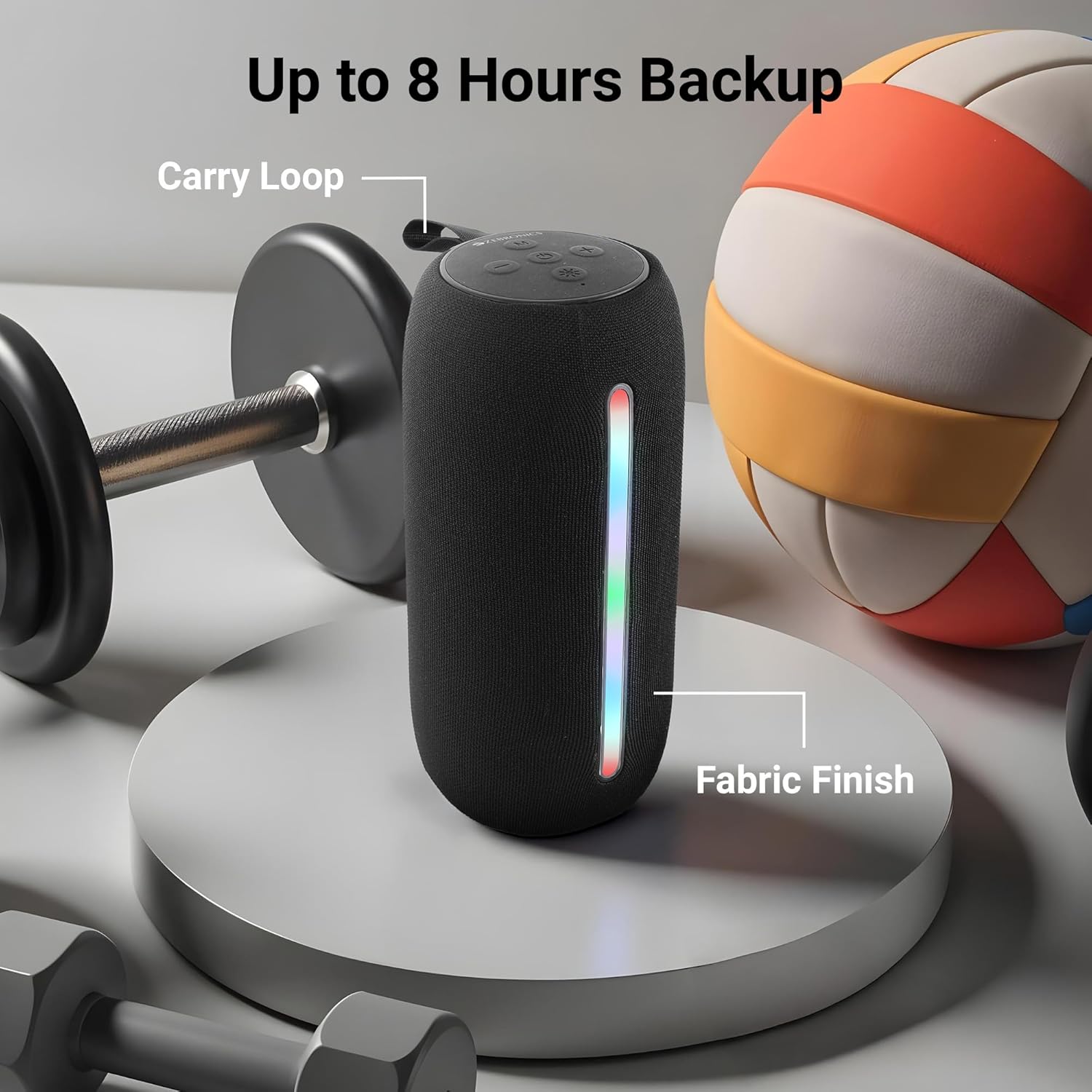 ZEBRONICS Sonic POD 20, Portable Bluetooth Speaker, 10 Watts, Upto 8 Hours Playback, RGB LED, Call Function, Fabric Finish with Carry Loop, BTv5.3 | TWS | USB | mSD | AUX (Black)