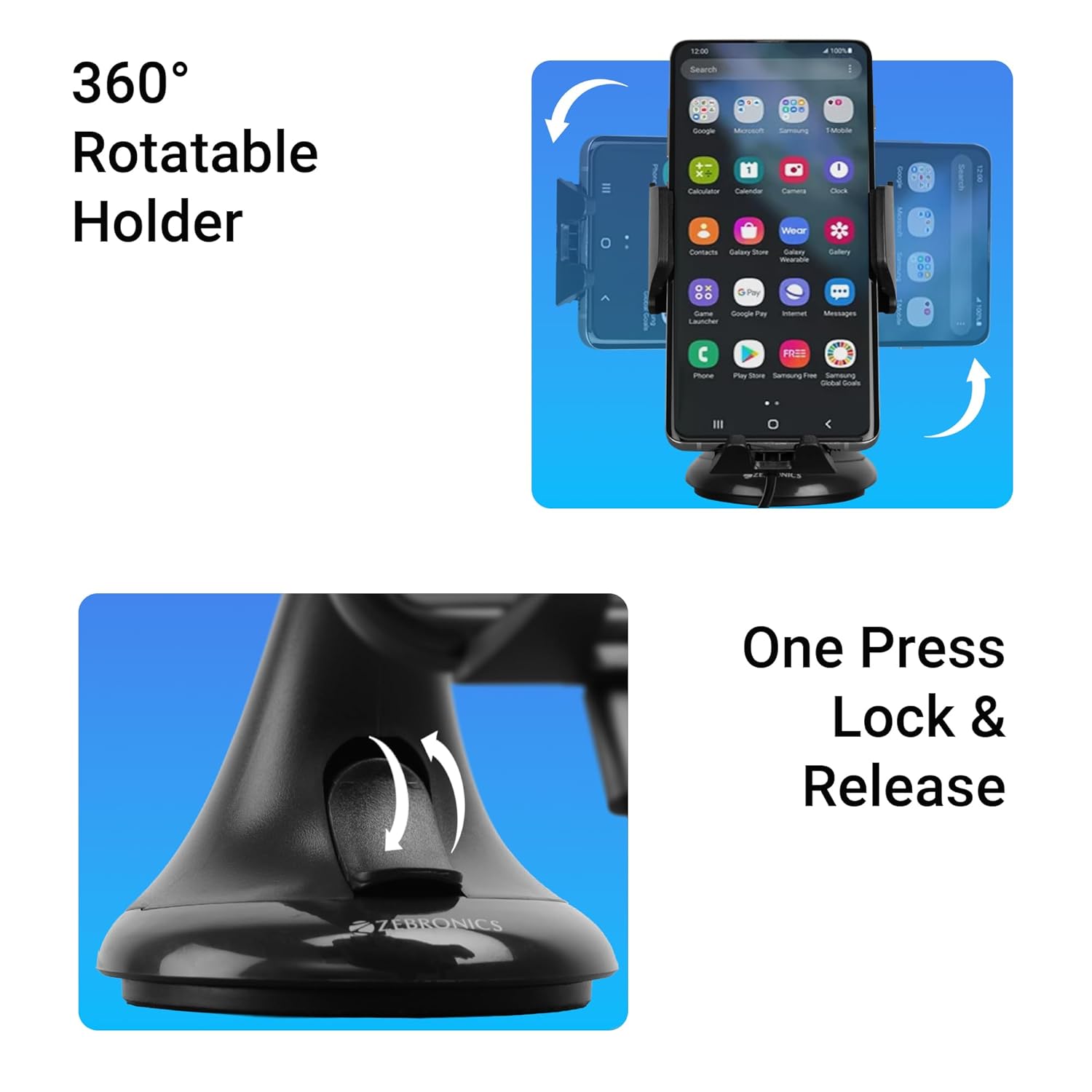 360° Rotatable Holder: The ZEB-WCC100 comes with a 360° rotatable holder, providing flexibility in positioning your device.