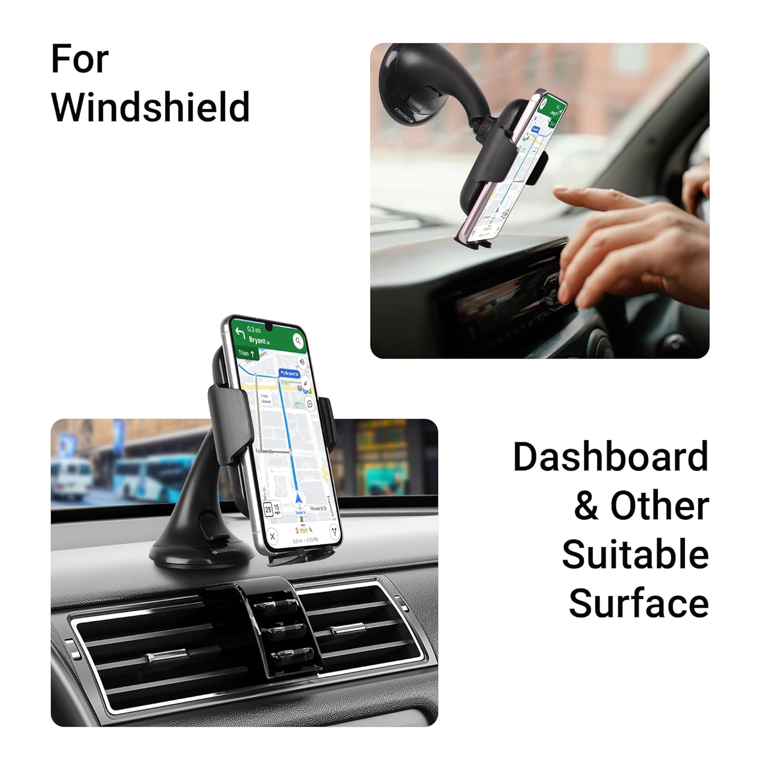 Suitable Surfaces: The ZEB-WCC100 offers mounting options on surfaces like the windshield and dashboard for easy access and visibility.