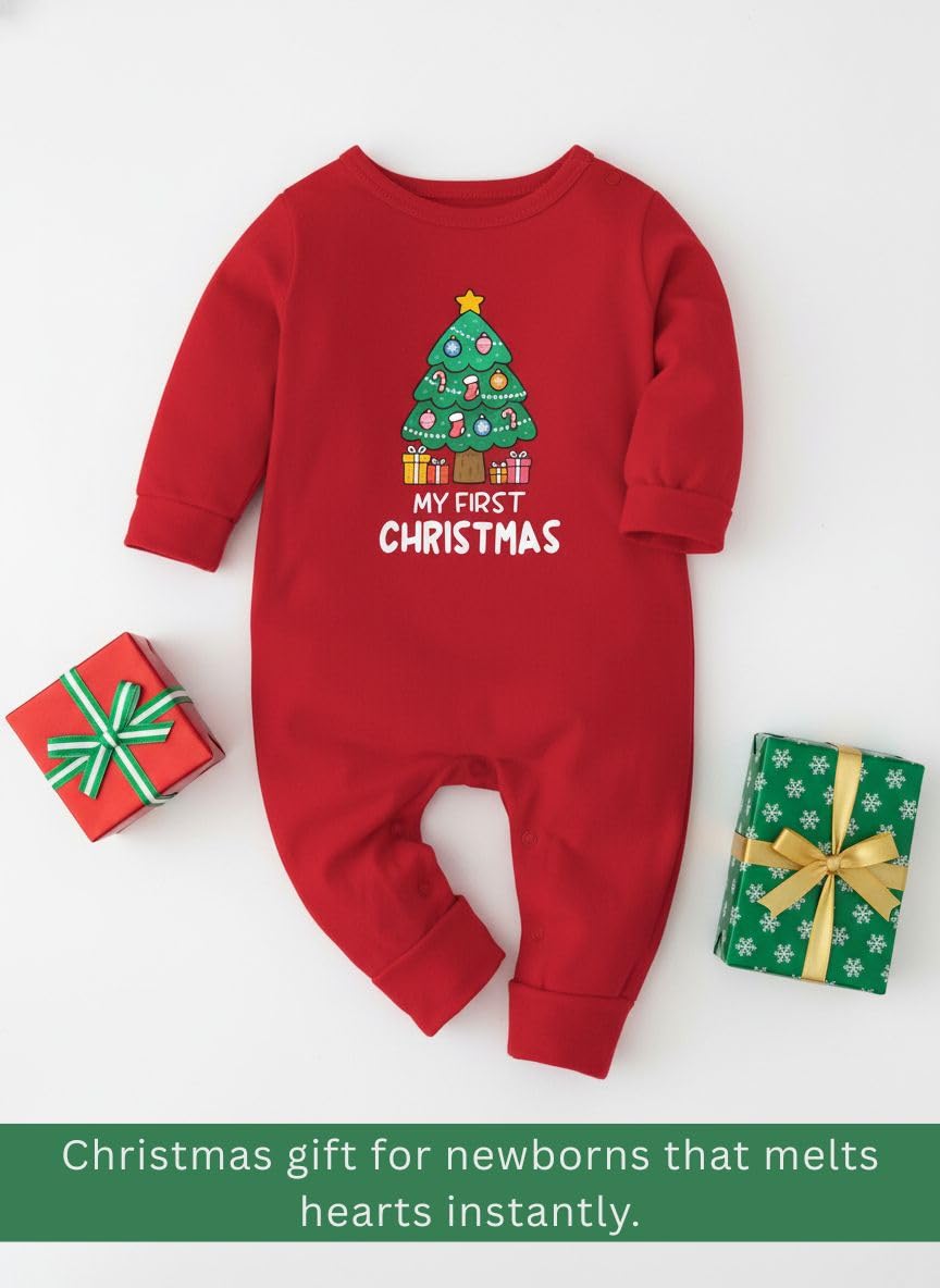 Zeezeezoo My First Christmas Baby Dress Outfit | 100% Cotton Clothes Full-Sleeve Bodysuit for Newborn Baby Boy & Girl Photoshoot