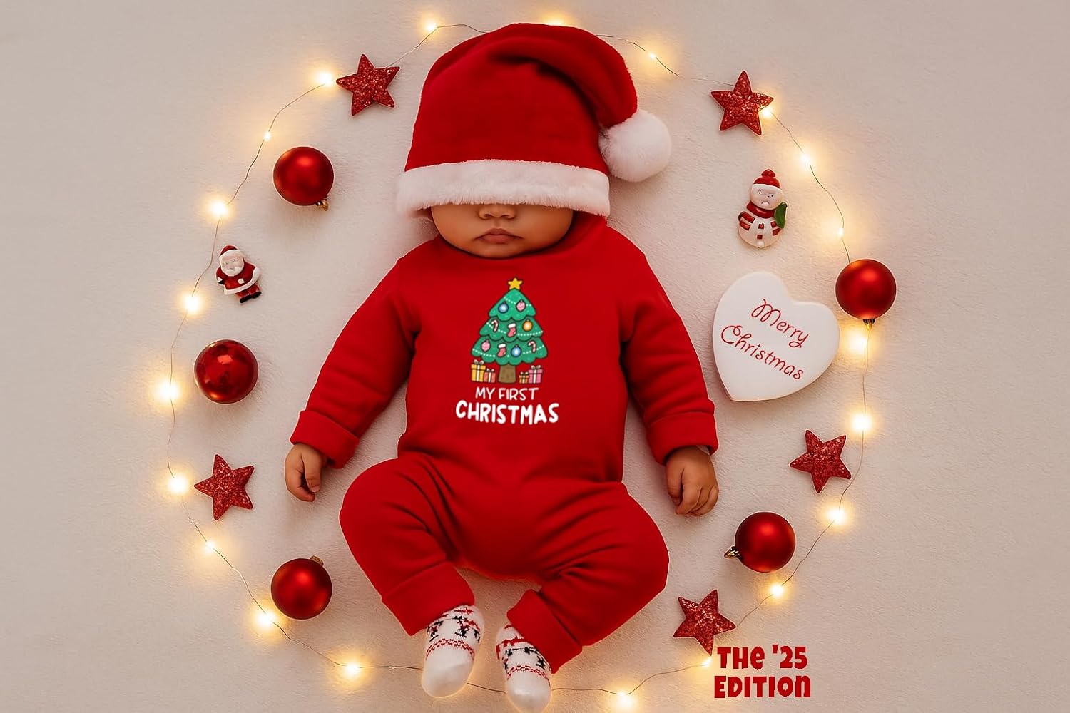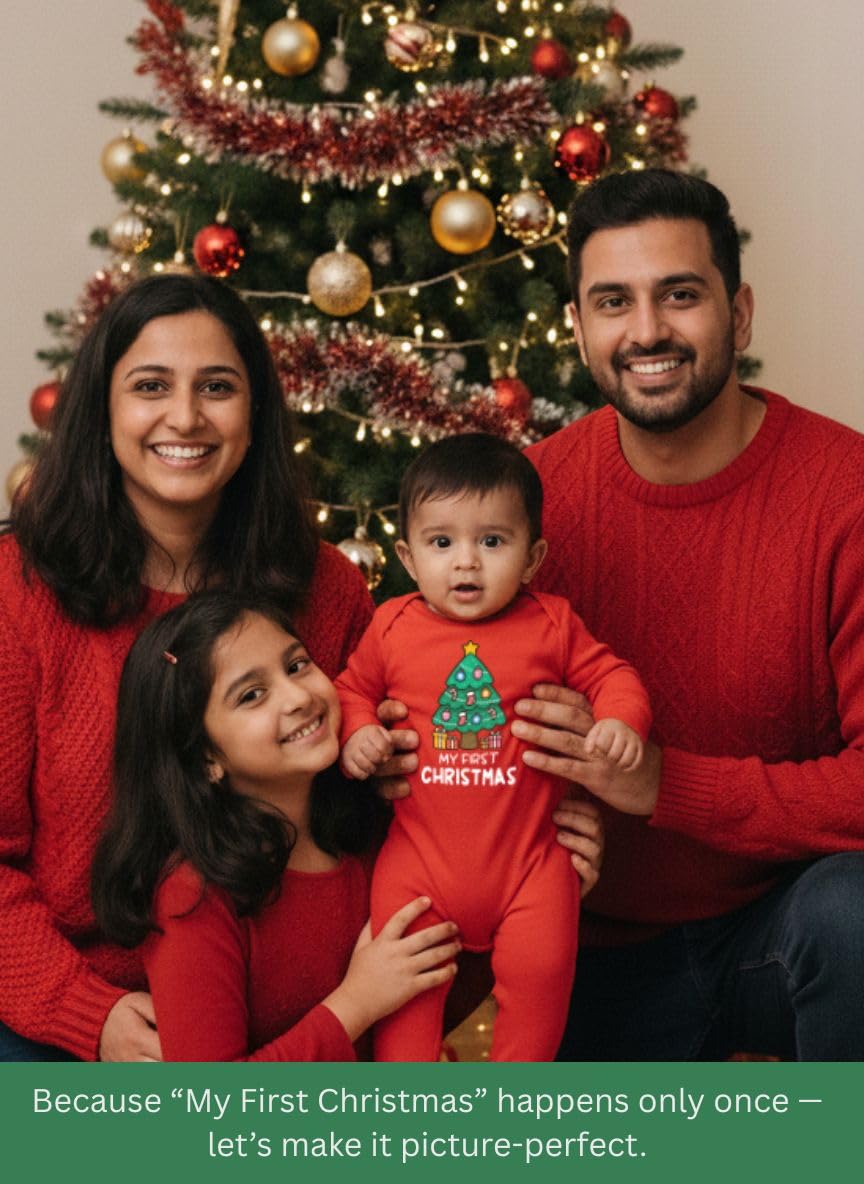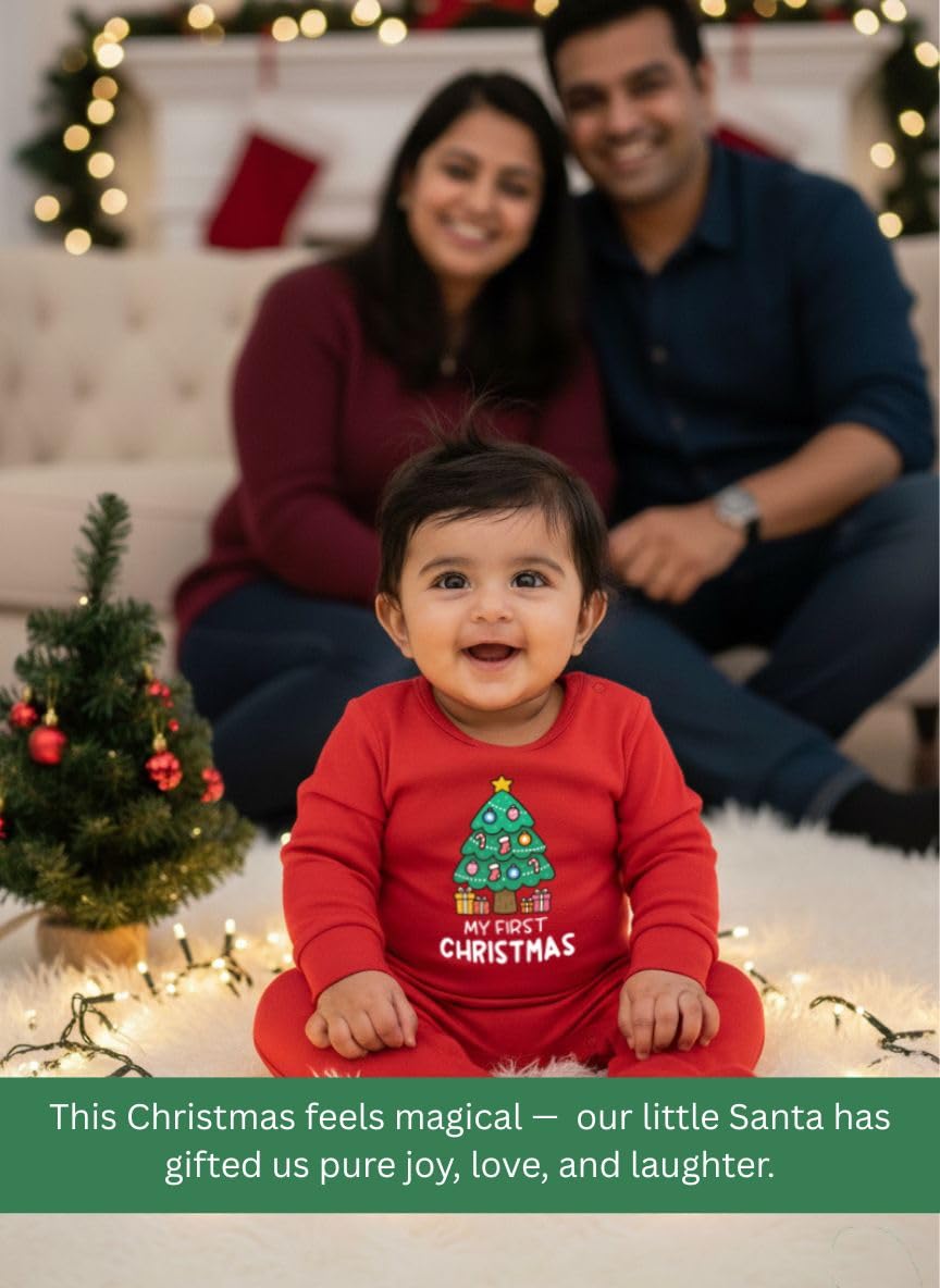 There’s only one first Christmas—and it deserves to be celebrated in the most special way. This “My First Christmas” full-sleeve bodysuit is designed not just for warmth and comfort, but for memories that will last a lifetime. From twinkling tree selfies to cozy family dinners, every picture of your little one in this romper becomes part of your family’s holiday story. It’s more than just babywear—it’s a keepsake that parents will treasure, grandparents will adore, and holiday albums will never forget. Soft, breathable cotton makes it perfect for baby’s delicate skin, while the festive design ensures your little star is photo-ready for every hug, gift, and giggle.