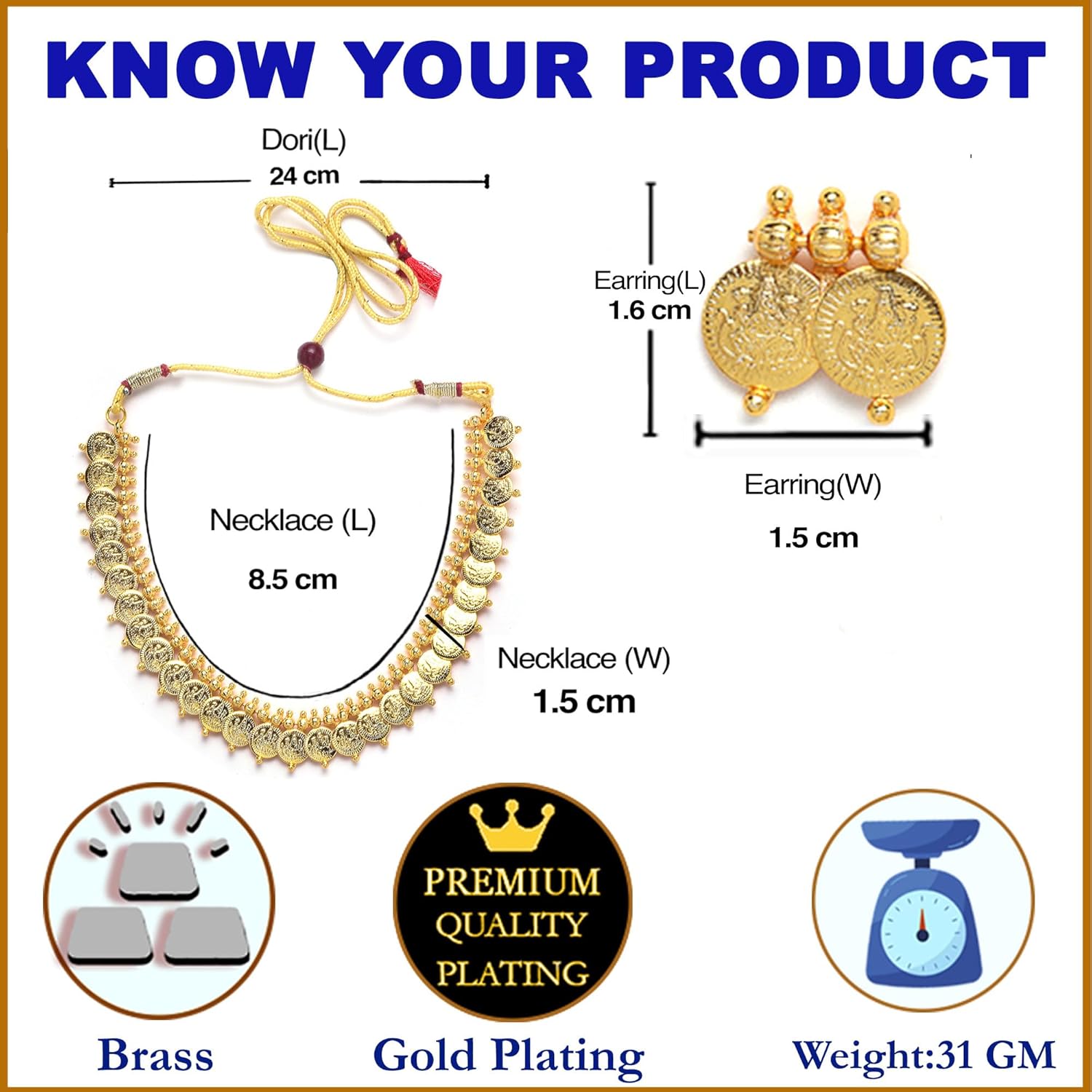 ZENEME Jewellery Set Gold Plated Laxmi Temple Coin Necklace Set With Earrings Jewellery For Women & Girls