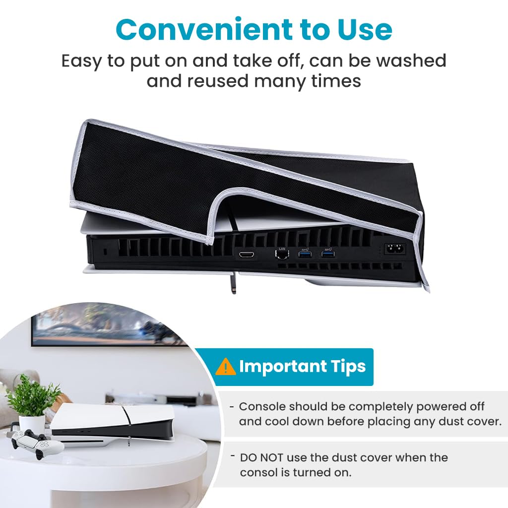 FULL COVERAGE PROTECTION: With its full coverage design, this dust-proof cover provides comprehensive protection for your PlayStation 5 Slim console. It covers the entire exterior surface, including the front, back, sides, and top, safeguarding it from dust accumulation and potential damage caused by exposure to environmental elements.
